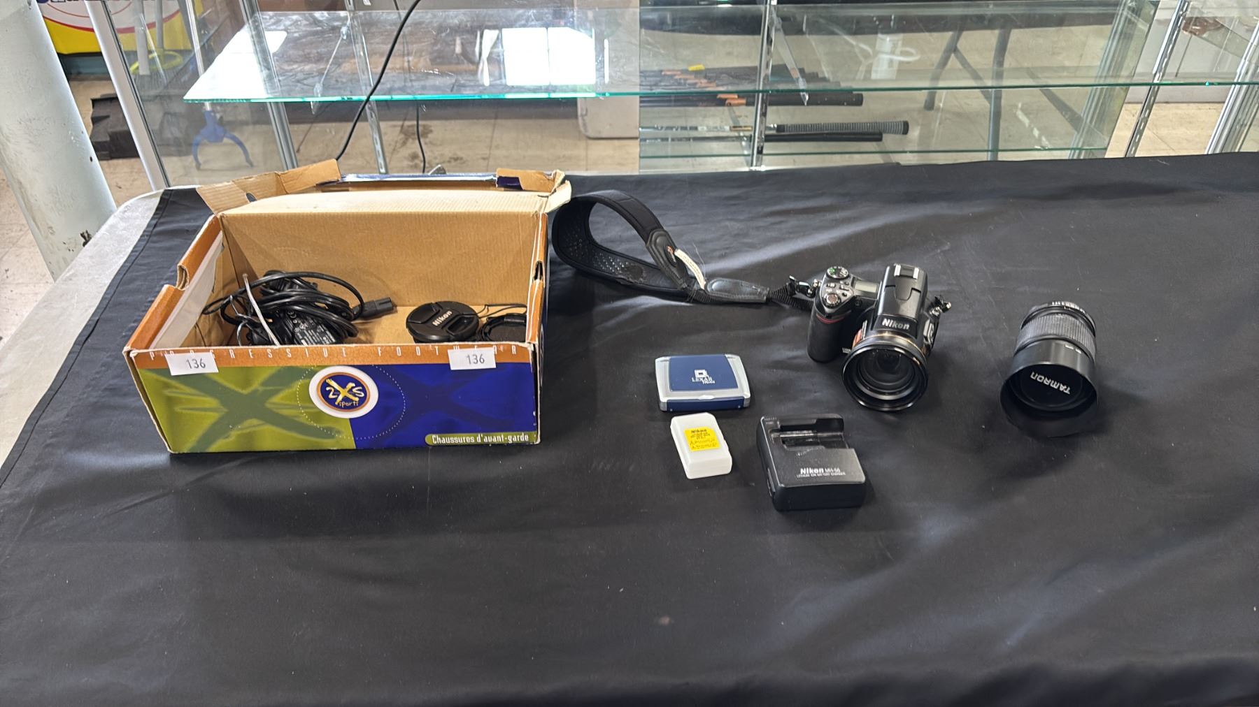 NIKON COOL PIX E8800 DIGITAL CAMERA WITH TAMRON LENSE, BATTERY, BATTERY CHARGER, BATTERY CASE,