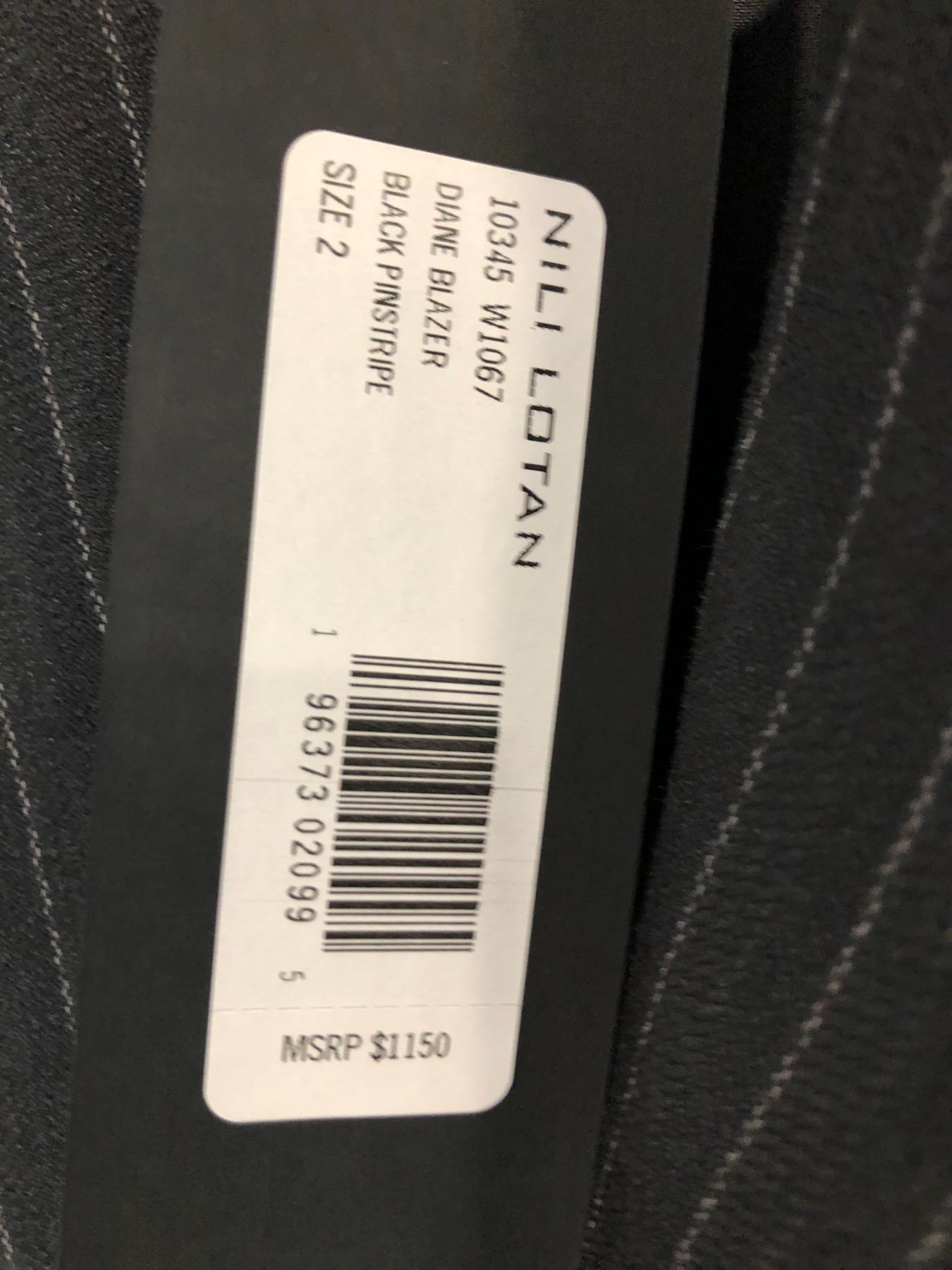 NILI LOTAN NEW YORK MARIETTE BLACK PINSTRIPE LADIES BLAZER SIZE 2 BLACK AND WHITE