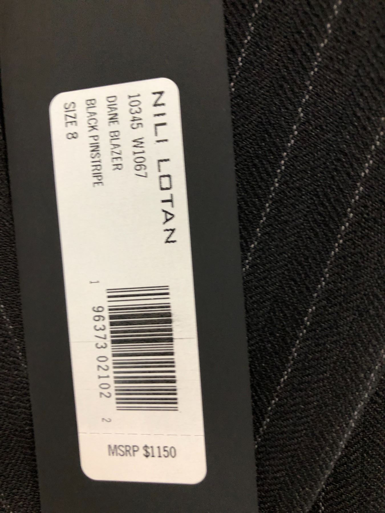 NILI LOTAN NEW YORK MARIETTE BLACK PINSTRIPE LADIES BLAZER SIZE 8 BLACK AND WHITE