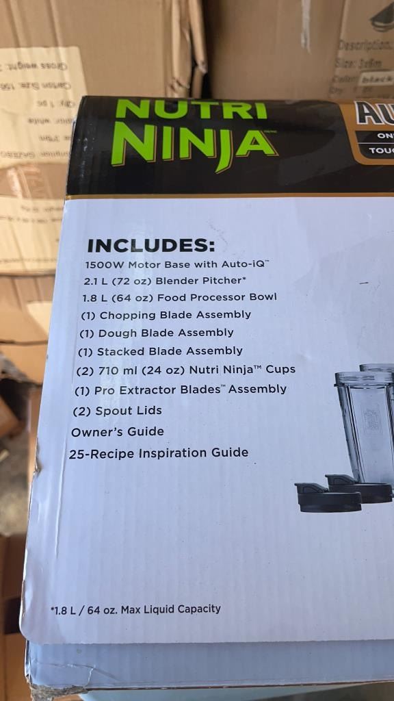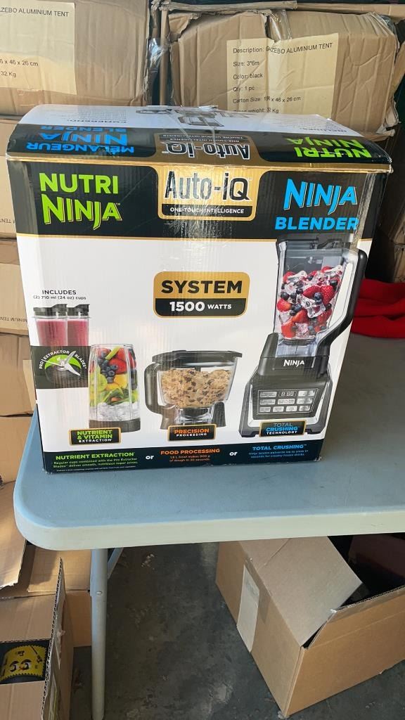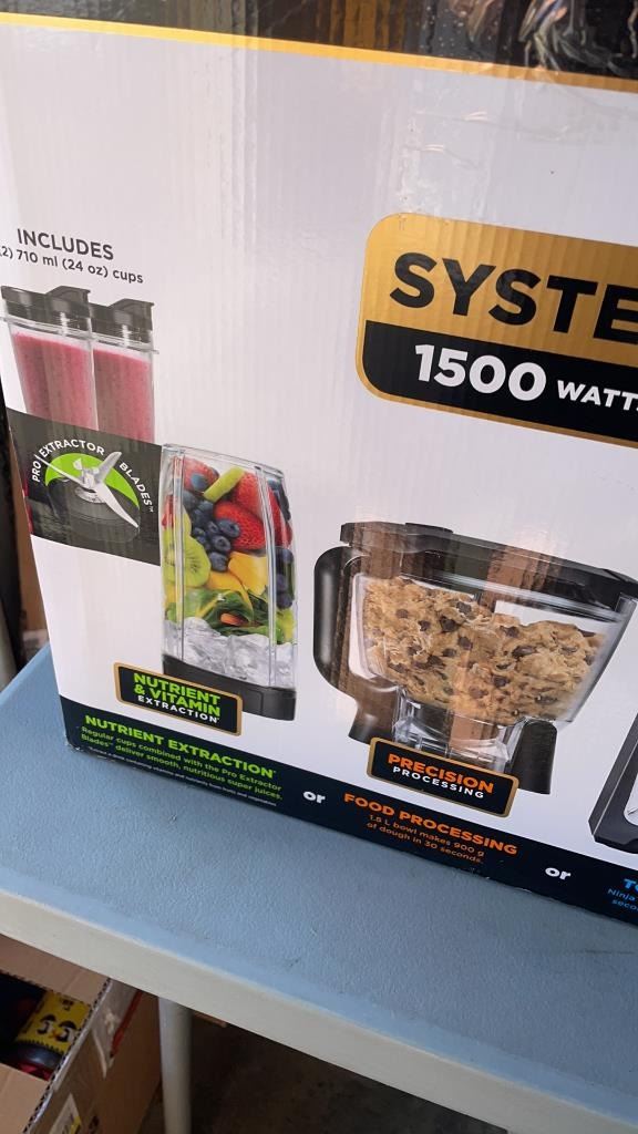 NINJA 1500W NUTRI AUTO-IQ KITCHEN SYSTEM W/ STAND BLENDER, FOOD PROCESSOR BOWL, AND CUPS - TESTED WORKING, RETAIL $339
