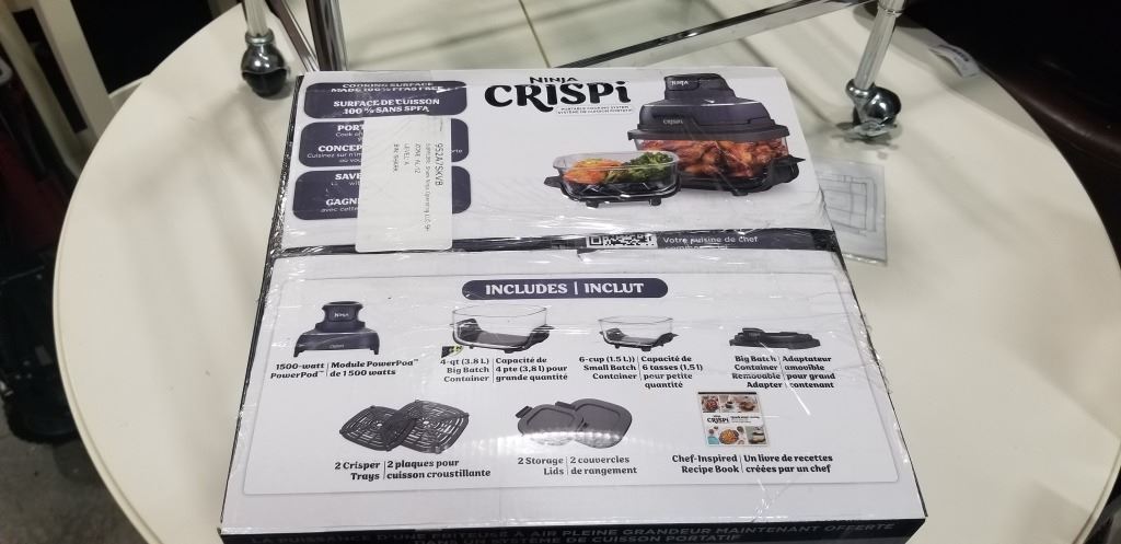 NINJA CRISPI 4IN1 PORTABLE GLASS AIR FRYER COOKING SYSTEM - TESTED WORKING, RETAIL $199