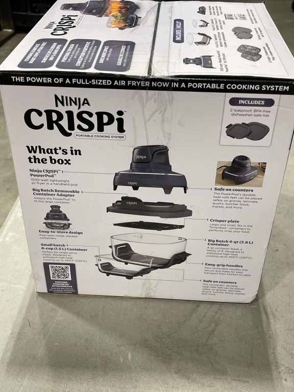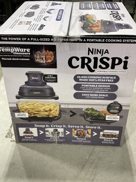 NINJA CRISPI 4IN1 PORTABLE GLASS AIR FRYER COOKING SYSTEM - TESTED WORKING, RETAIL $199
