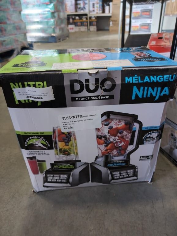 NINJA NUTRI NINJA DUO AUTO-IQ 1300W STAND BLENDER WITH NUTRI NINJA CUPS - TESTED WORKING
