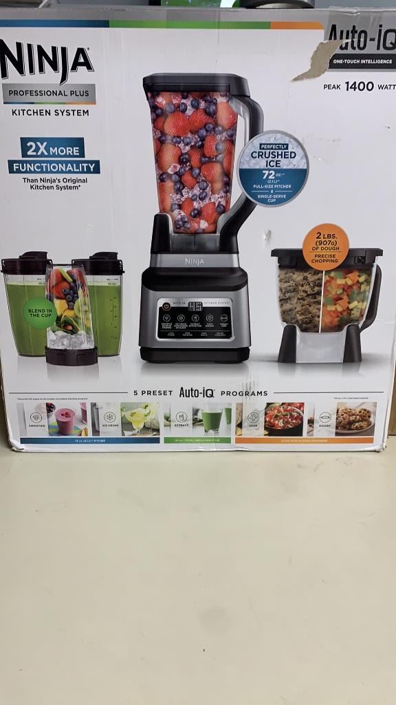 NINJA PRO PLUS AUTO IQ KITCHEN SYSTEM W/ 1200W BLENDER, PITCHER, AND CUPS - RETAIL $339