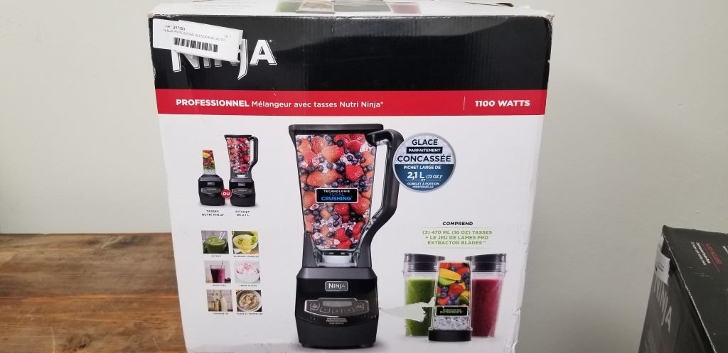 NINJA PROFESSIONAL BLENDER W/ AUTO IQ 1100W COUNTERTOP BLENDER WITH NUTRI NINJA CUPS - TESTED WORKING, RETAIL $179