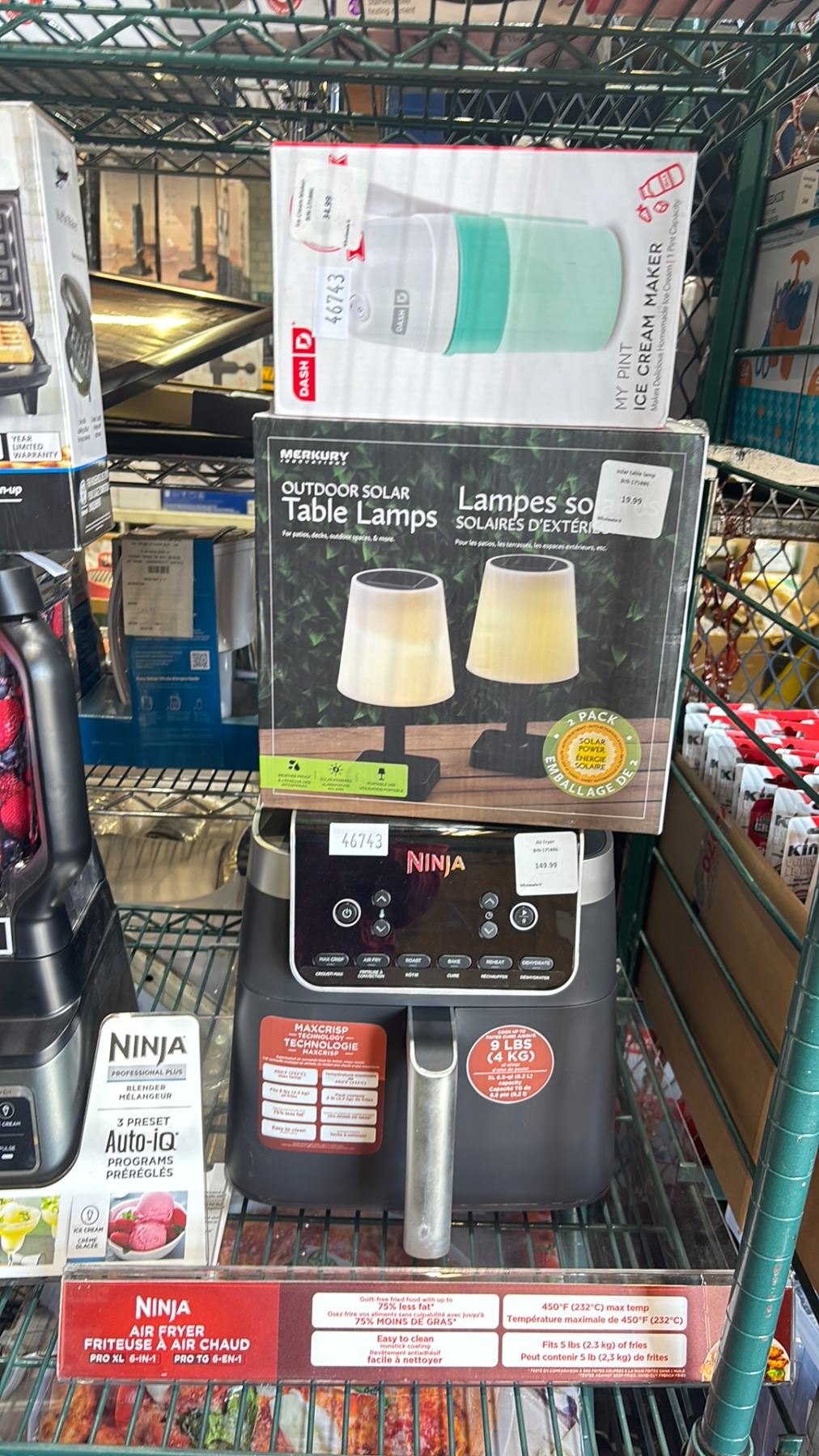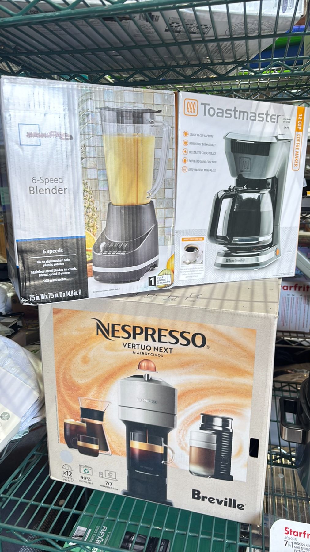 NINJA PROFESSIONAL PLUS BLENDER *CORDS CUT/RETAIL STORE MODEL*, NINJA AIR FRYER *CORDS CUT/RETAIL STORE MODEL* STARFRIT 7-IN-1 INDOOR AIR FRYER GRILL *CORDS CUT/RETAIL STORE MODEL*, DASH MY PINT ICE CREAM MAKER, MAINSTAYS WAFFLE MAKER, MAINSTAYS 6 SPEED BLENDER, TOASTMASTER 12 CUP COFFEE MAKER, MERKURY OUTDOOR SOLAR TABLE LAMPS & A NESPRESSO VERTUO COFFEE MAKER