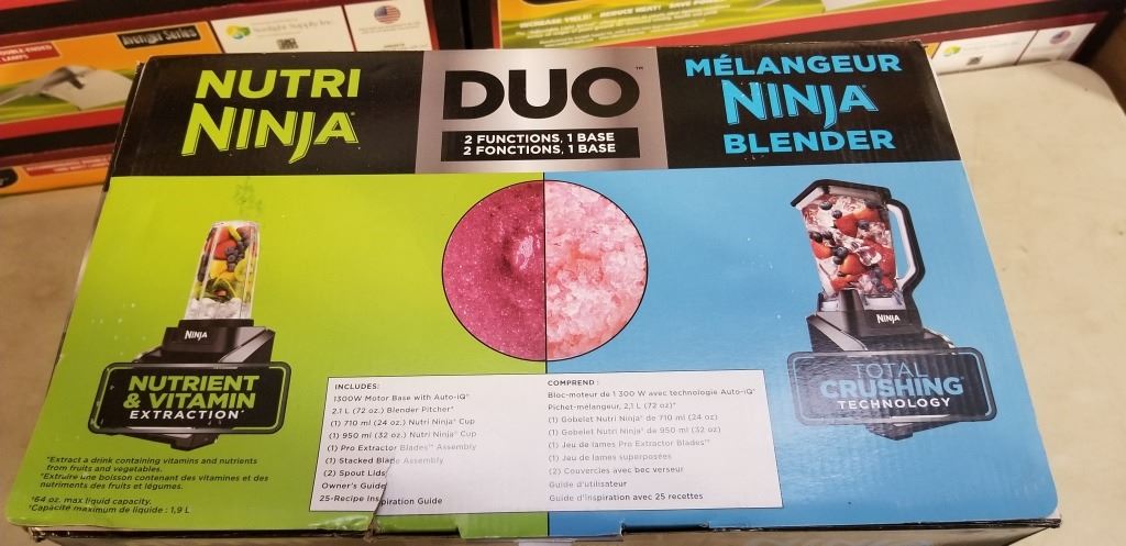 NINJA PROFESSIONAL PLUS BLENDER DUO AUTO-IQ 1400W COUNTERTOP BLENDER W/ NUTRI NINJA CUPS - TESTED WORKING, RETAIL $299