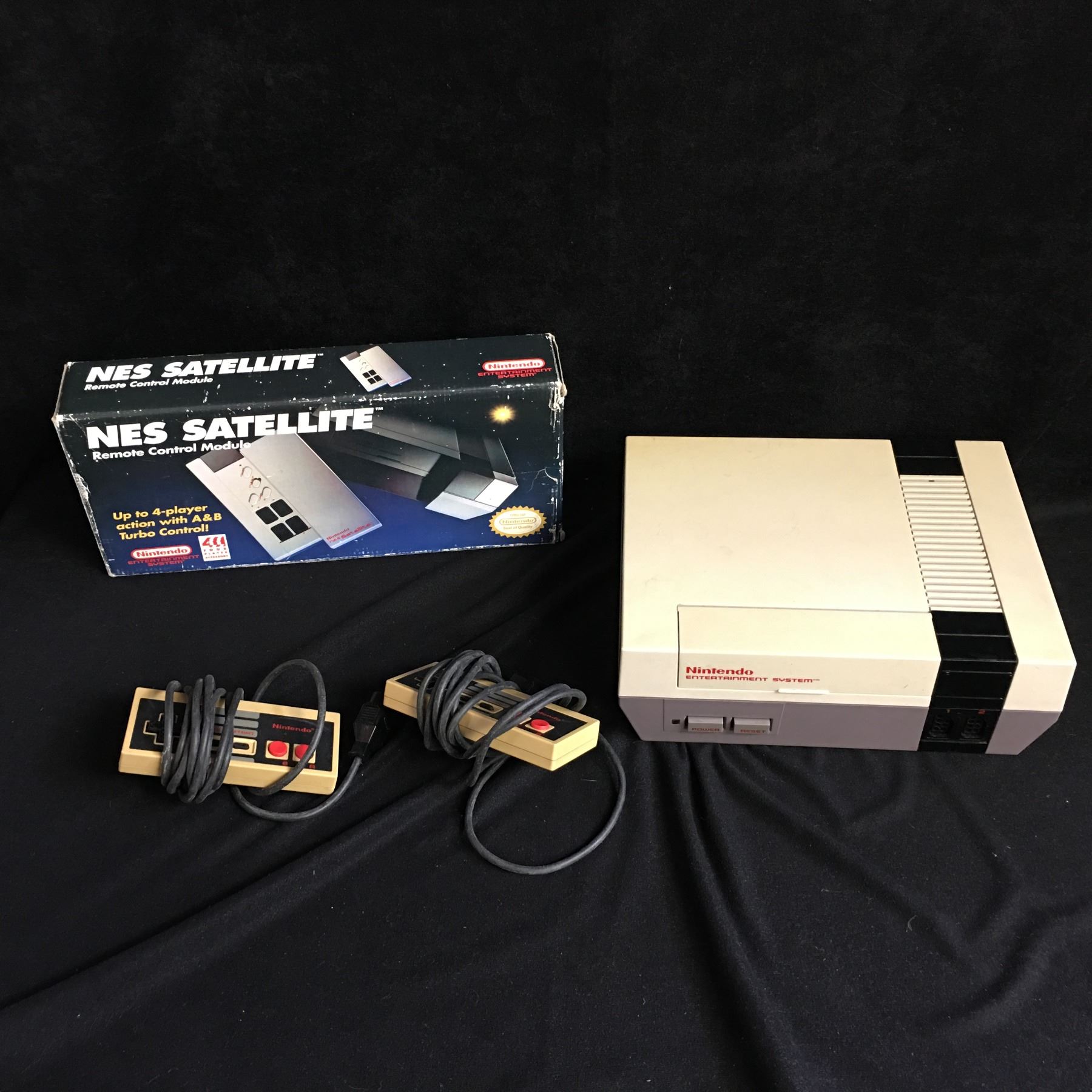 NINTENDO ENTERTAINMENT SYSTEM CONTROL DECK w/ CONTROLLERS & NES SATELLITE