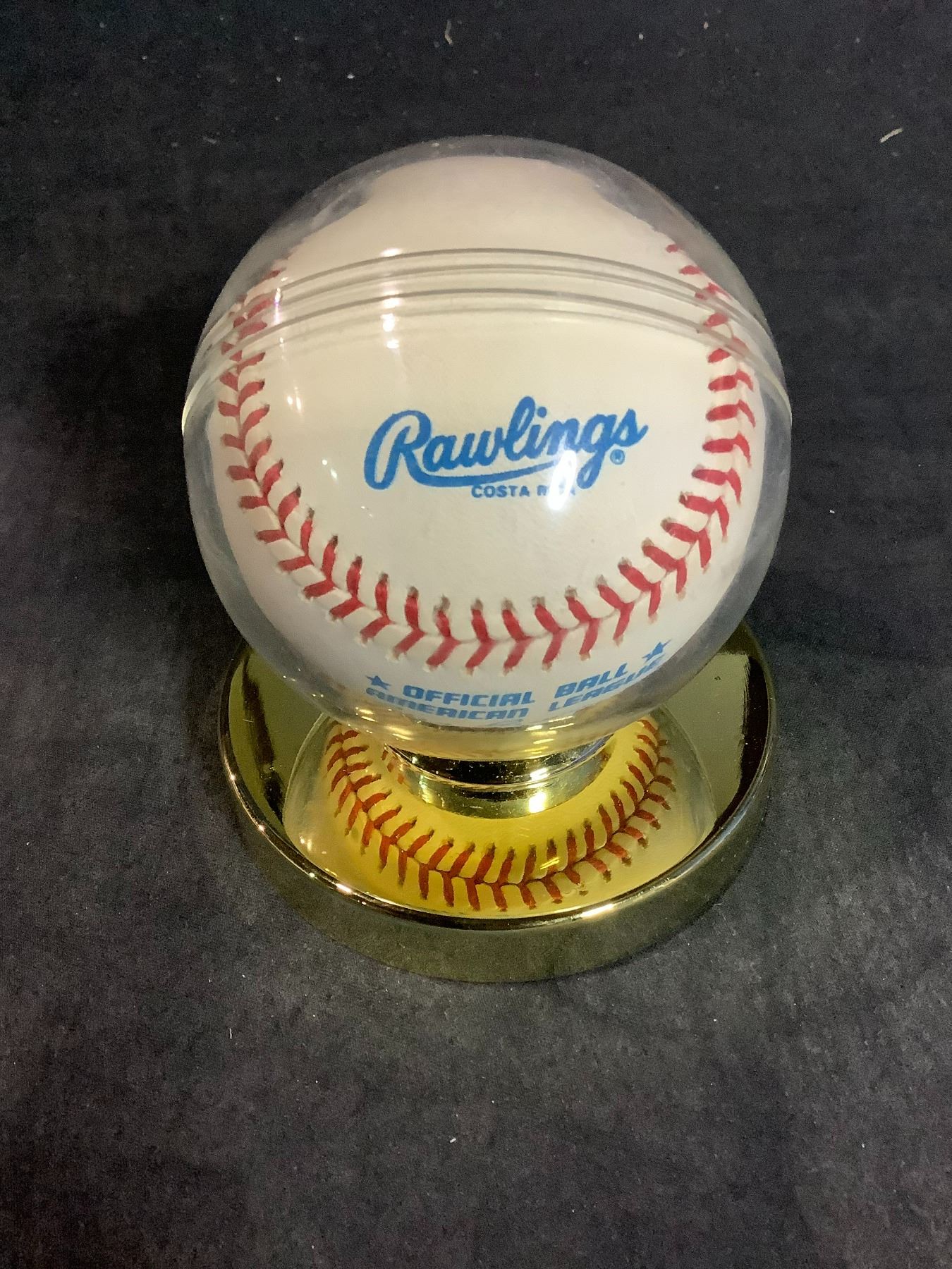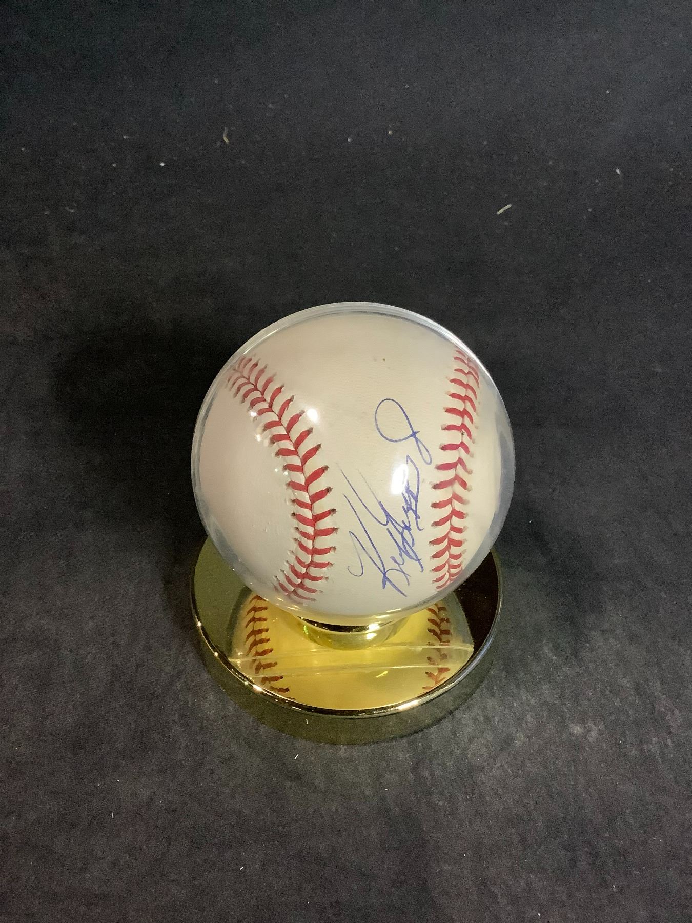 *NO COA* AUTOGRAPHED KEN GRIFFEY JR. BASEBALL WITH GOLD COLOURED BASEBALL HOLDER