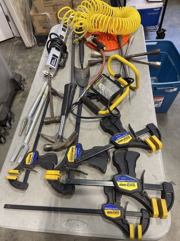 NOMA COMMERCIAL POWER BAR, QUICK GRIP CLAMPS AND ASSORTED SHOP TOOLS