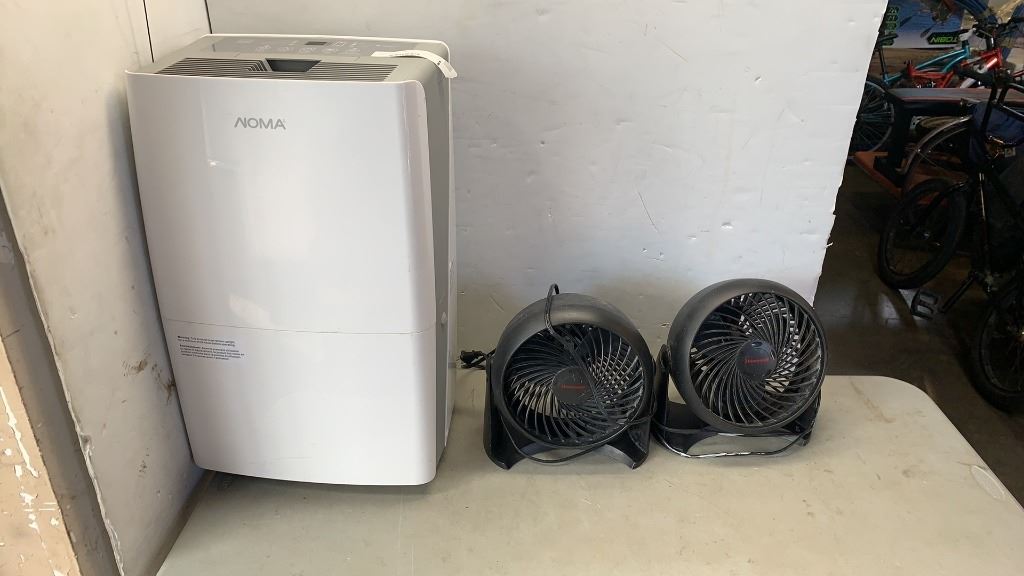 NOMA DEHUMIDIFER AND 2 HONEYWELL PERSONAL FANS ALL WORKING