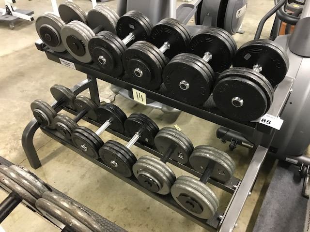 NORTHERN LIGHTS 2 TIER DUMBBELL RACK WITH MISC. DUMBBELLS