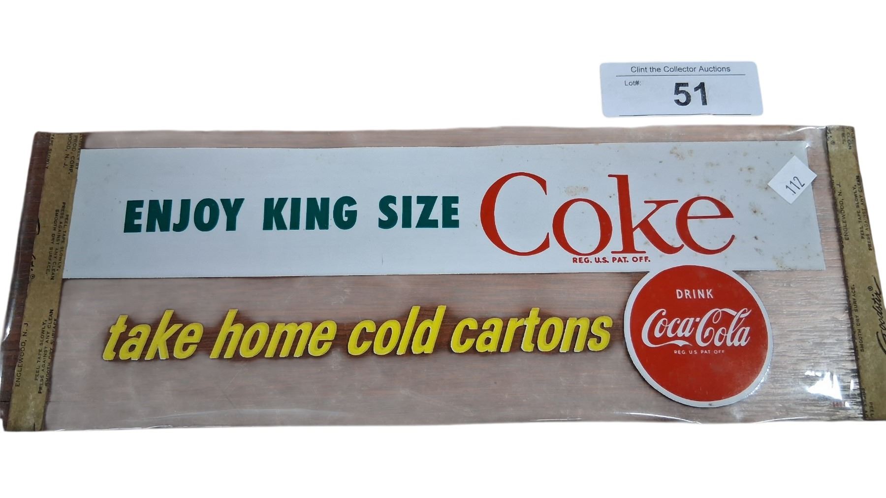 NOS 1950s king size Coke door/window ad 13"x4.5"
