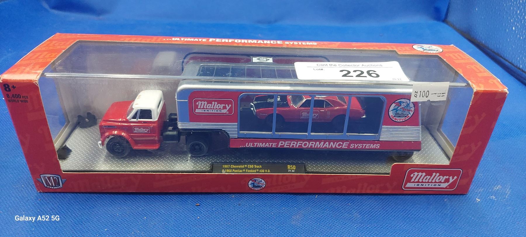 NOS Mallory Ignitions 1:64 scale 1967 Chev truck & trailer w/1968 Pontiac Firebird