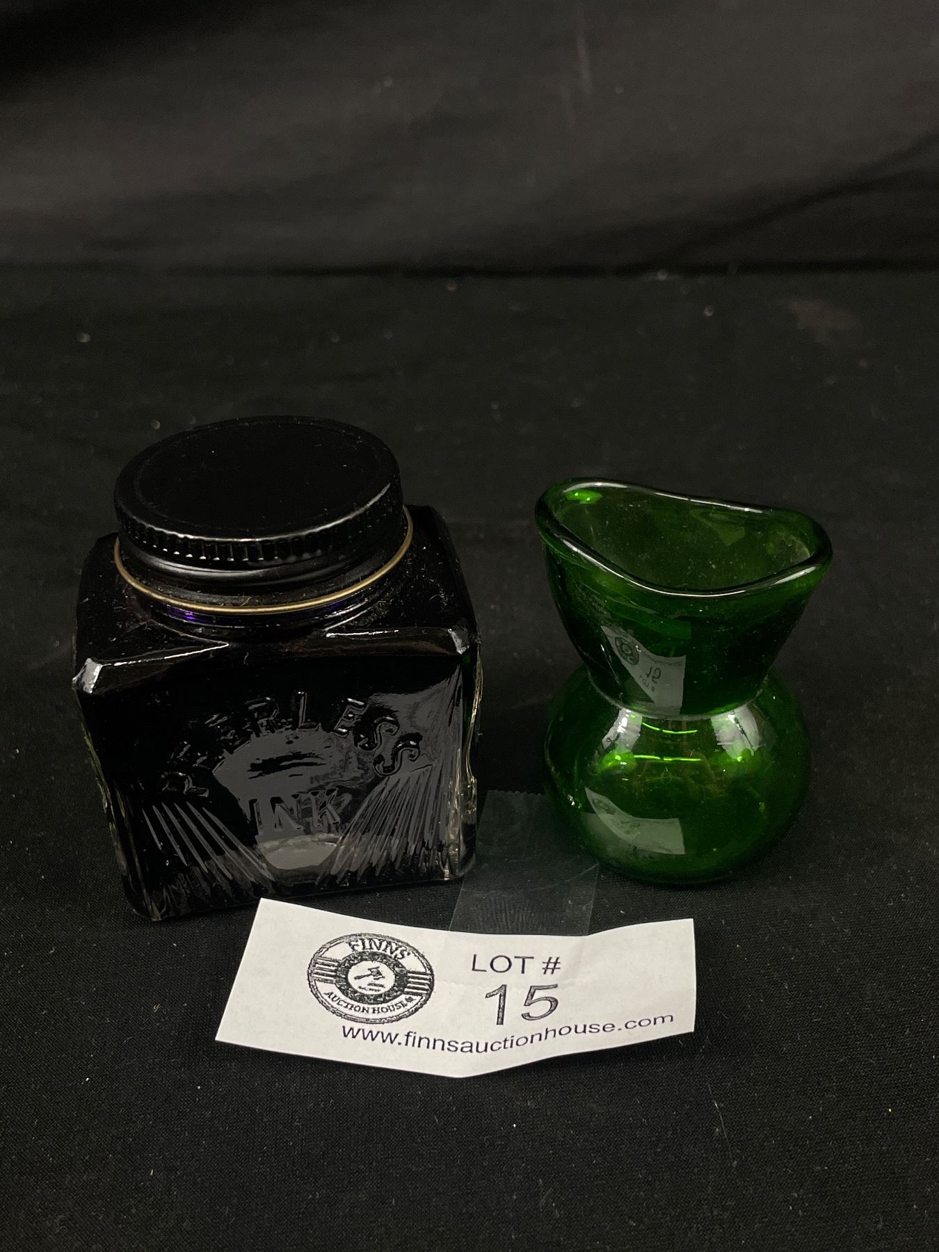 NOS Violet Ink (Full) & Vintage Dark Green Glass Eyebath