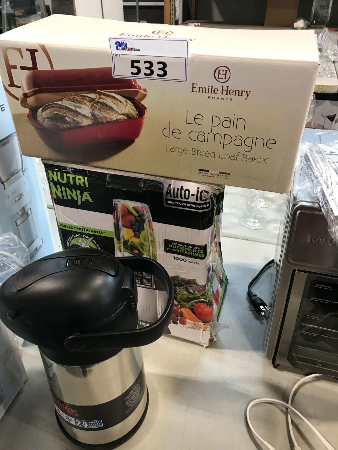 NUTRA NINJA BLENDER, THERMOS CARAFE AND EMILE HENRY BREAD BAKER