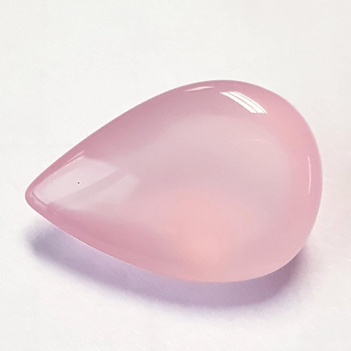 Natural Rose Quartz (AAA Grade) WEIGHT : 20.67 cts; SHAPE : Pear Cabochon; SIZE ( L x W x D ) : 23.11 x 15.54 x 9.77 mm; QUANTITY : 1 pieces ; COLOR : Pastel Pink AAA COLOR; CLARITY : Flawless-VVS (Highly Transparent) ORIGIN : Brazil; HARDNESS : 7; LUSTER : Excellent Polish & Beautiful Luster; TREATMENT : 100% Natural Unheated;