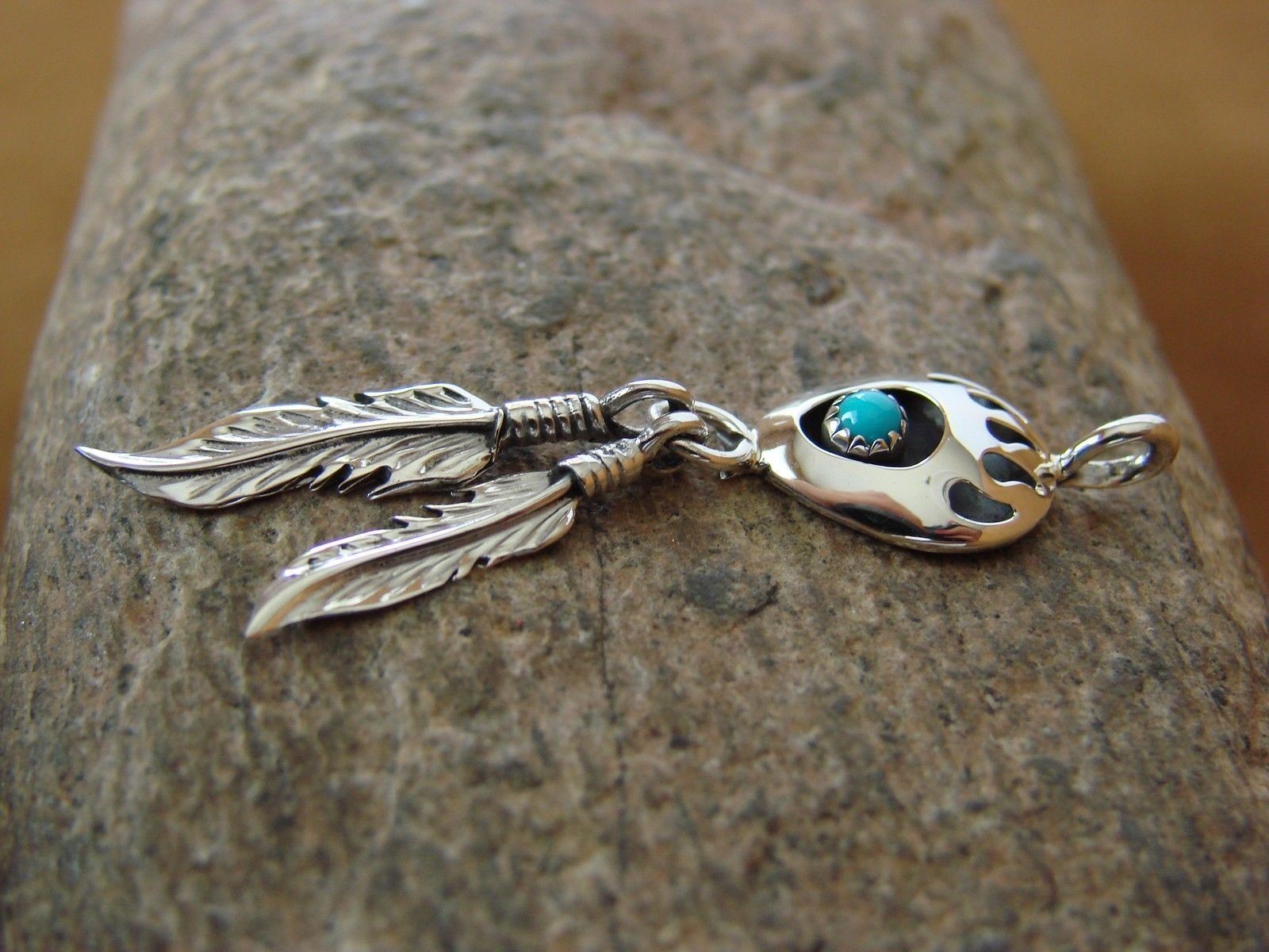 Native American Jewelry Natural .925 Sterling Silver Turquoise Bear Paw Pendant! Comes with 20" Chain. 10.4 Total Gram Weight.