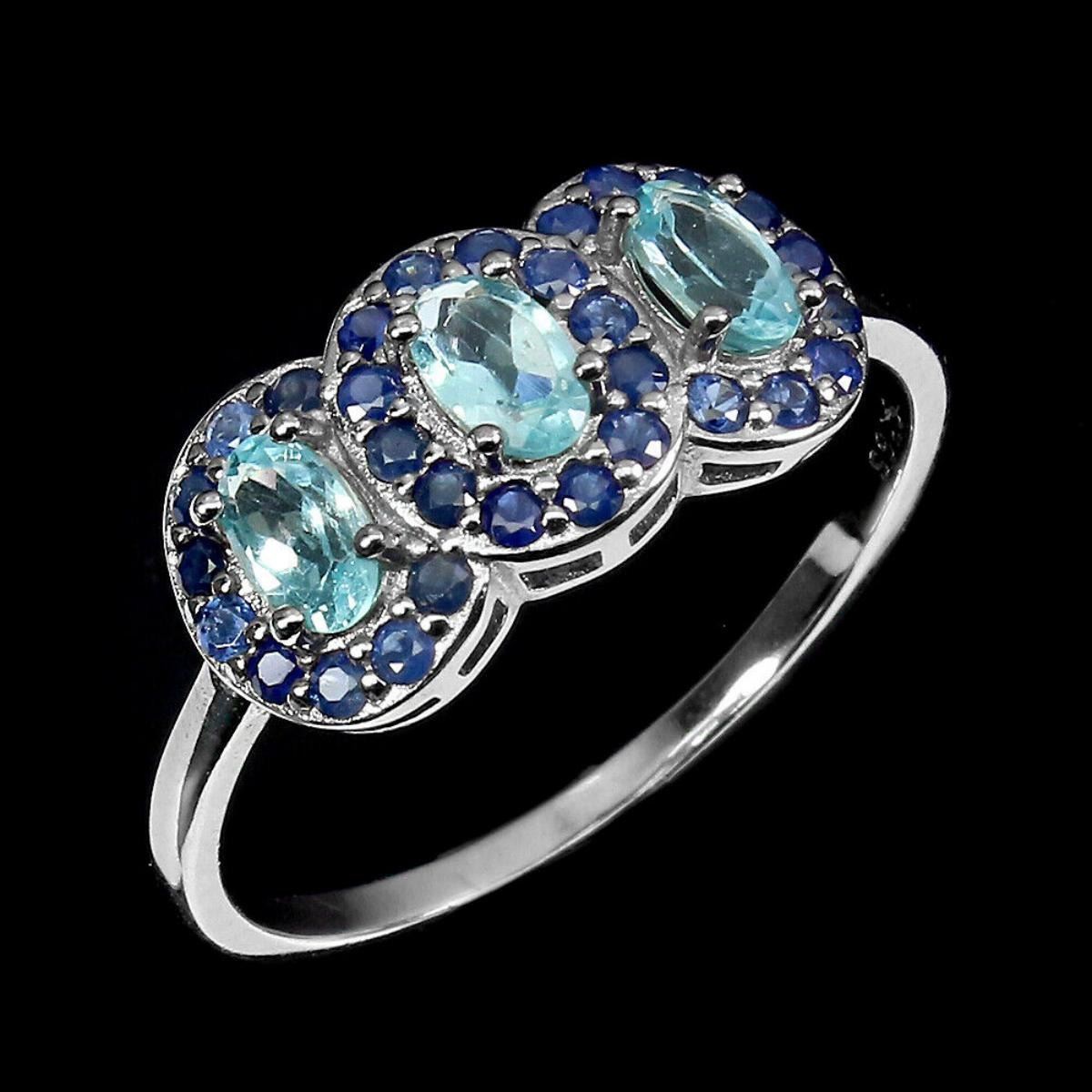 925 STERLING SILVER;PLATE-14K WHITE GOLD;RING SIZE/resizeable-7;MAIN STONE-APATITE;OTHER GEMS-SAPPHIRE;TOTAL WEIGHT-2.13 GRAM (TOTAL WEIGHT OF SILVER + STONE)DIMENSION-* STONE 1.5 TO 5.0 X 3.0 MM.;* RING SIZE- 7.0;* FACE RING- 17.0 X 9.0 MM.;MAIN STONE SHAPE-OVAL CUT;MAIN STONE COLOR-sky BLUE;CLARITY/GRADE-IF TO VVS;TREATMENT-UNHEATED;ORIGIN-Brazil/AFRICA;HARDNESS-5;