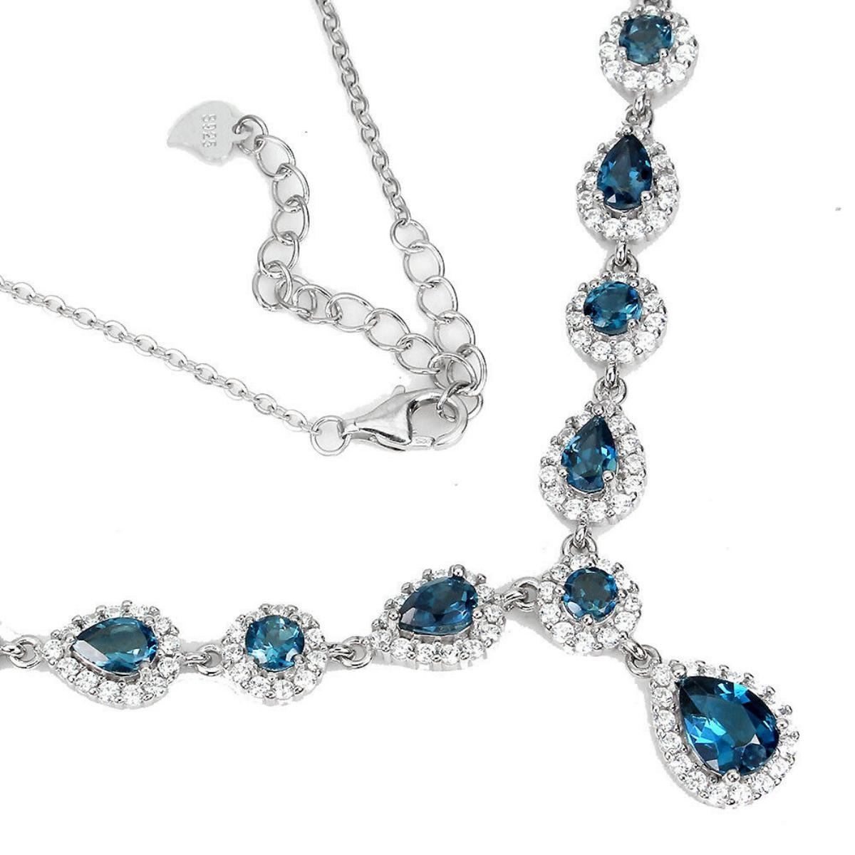 925 STERLING SILVER;PLATE-14K WHITE GOLD;LENGTH (INCHES)-16;MAIN STONE-LONDON BLUE TOPAZ;TOTAL WEIGHT-15.9 GRAM (TOTAL WEIGHT OF SILVER + STONE);DIMENSION-* STONE 4.0 TO 8.0 X 6.0 MM.* TOTAL LENGTH 16.0 INCHES.* STONES PART LENGTH 190.0 X 22.0 MM.;MAIN STONE SHAPE-PEAR;MAIN STONE COLOR-LONDON BLUE;CLARITY/GRADE-IF TO VVS;TREATMENT-IRRADIATED;ORIGIN-AFRICA;HARDNESS-8.0;