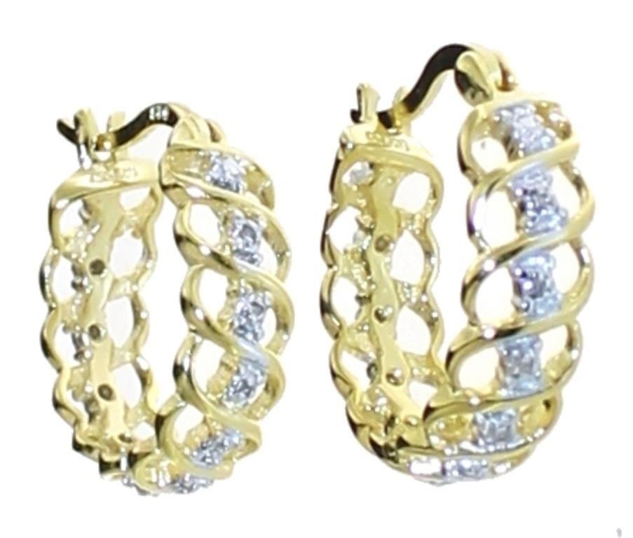 Natural 0.25 White Diamond Hoop earrings 14k Yellow Gold Plated 1in 925 Sterling Silver - Appraised Replacement Value CAD 780
