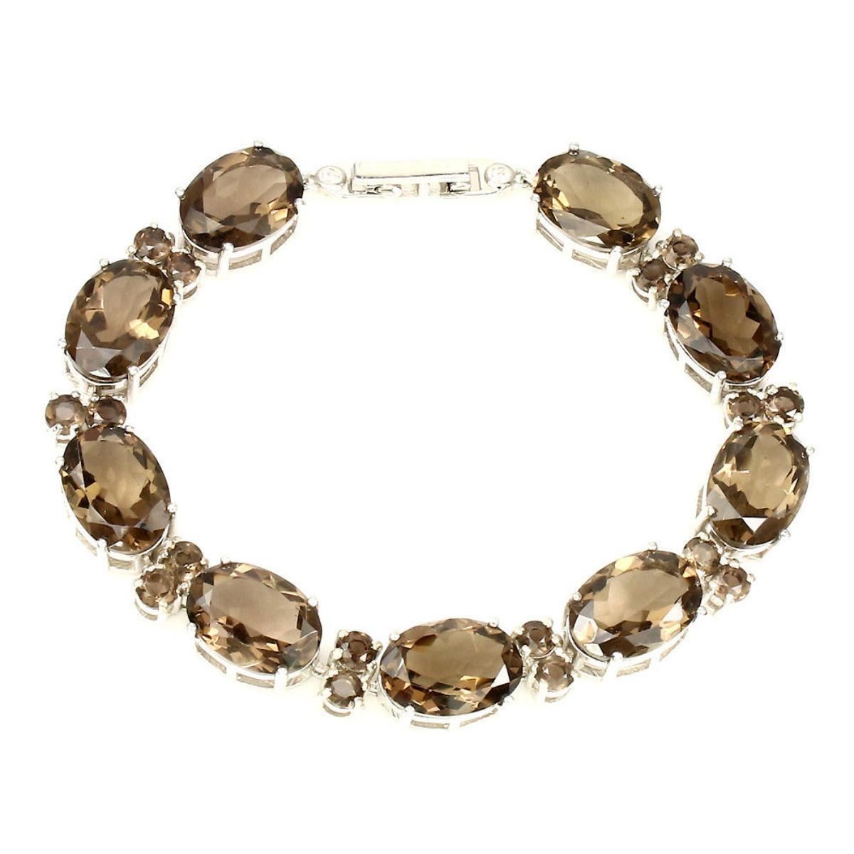 925 STERLING SILVER;PLATE..14K WHITE GOLD;LENGTH (INCHES)8MAIN STONESMOKY QUARTZOTHER GEMSTOTAL WEIGHT139.60 CT (TOTAL WEIGHT OF SILVER + STONE)DIMENSION* STONE 3.0 TO 14.0 X 10.0 MM. * FACE BRACELET 175.0 X 15.0 MM.MAIN STONE SHAPEOVAL CUTMAIN STONE COLORTOP SMOKYCLARITY/GRADEIF TO VVSLUSTERMESMERIZINGTREATMENTUNHEATEDORIGINBRAZILHARDNESS7.0