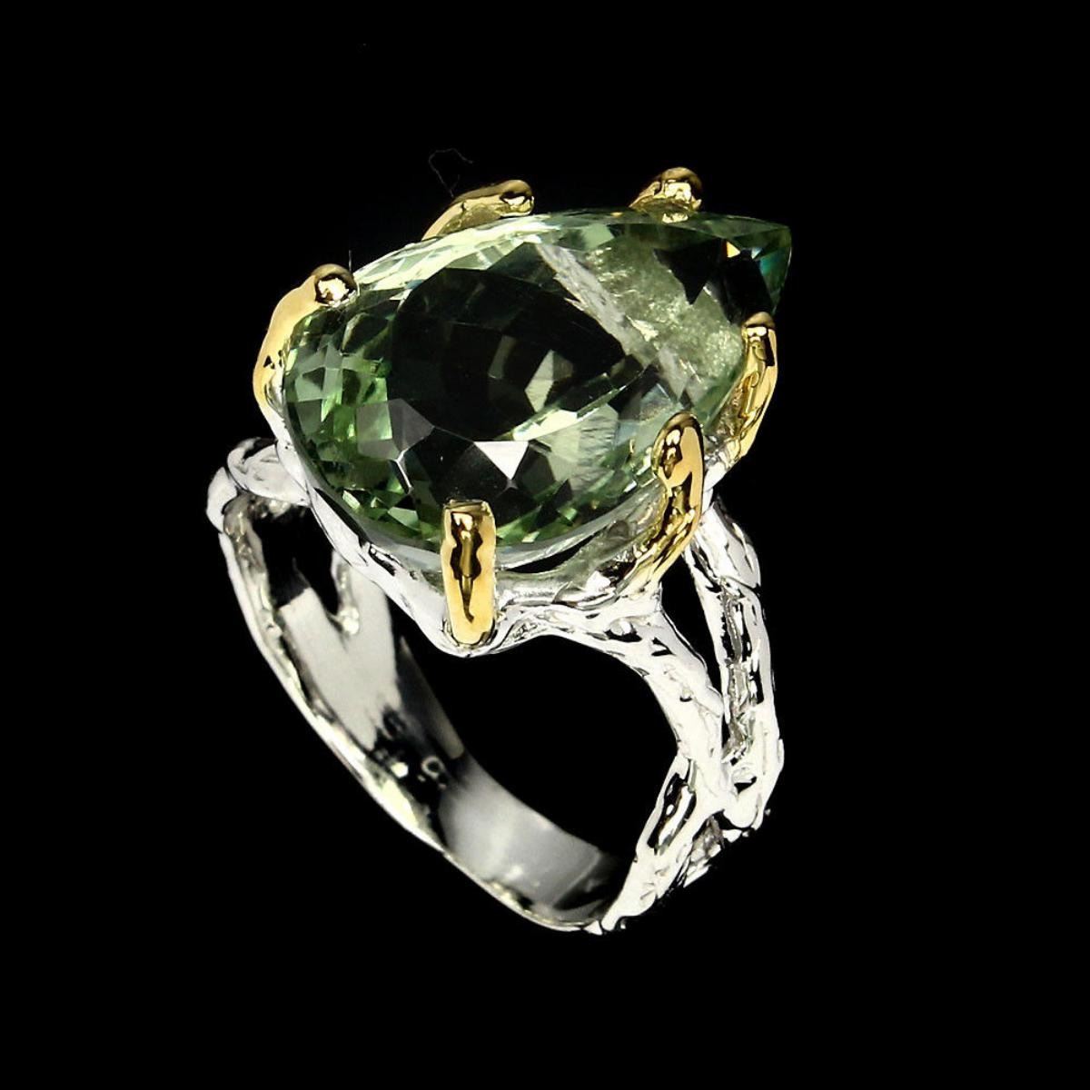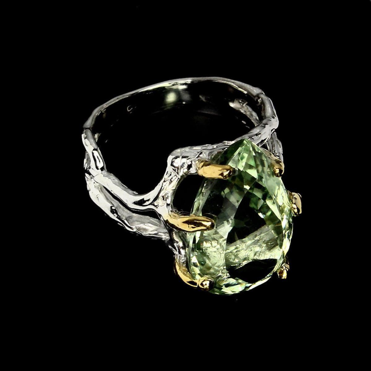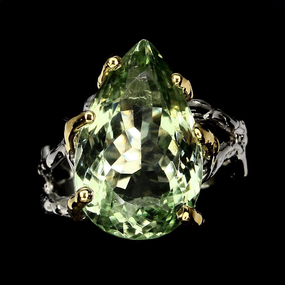 925 STERLING SILVER;PLATE2-TONE WHITE & YELLOW 14K GOLD;RING SIZ8(resizeable)MAIN STONEAMETHYSTOTHER GEMSTOTAL WEIGHT40.63 CT (TOTAL WEIGHT OF SILVER + STONE)DIMENSION* STONE 19.0 X 12.0 MM. * FACE RING 19.0 X 15.0 MM.MAIN STONE SHAPEPEAR CUTMAIN STONE COLORTOP NICE GREENCLARITY/GRADEIFLUSTERGLORIOUSTREATMENTHEATEDORIGINBRAZILHARDNESS7