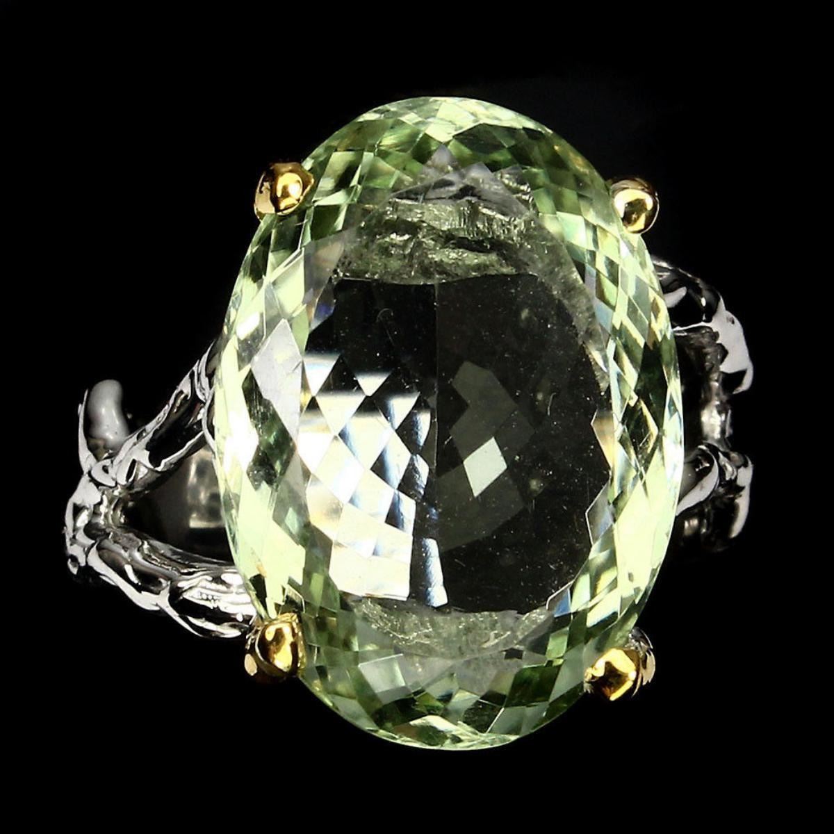 925 STERLING SILVER;PLATE2-TONE WHITE & YELLOW 14K GOLD;RING SIZE8(resizeable);MAIN STONEAMETHYST;;TOTAL WEIGHT36.66 CT (TOTAL WEIGHT OF SILVER + STONE)DIMENSION* STONE 19.0 X 14.0 MM. * FACE RING 19.0 X 14.0 MM.MAIN STONE SHAPEOVAL CUTMAIN STONE COLORTOP NICE GREENCLARITY/GRADEIFLUSTEREXQUISITETREATMENTHEATEDORIGINBRAZILHARDNESS7.0
