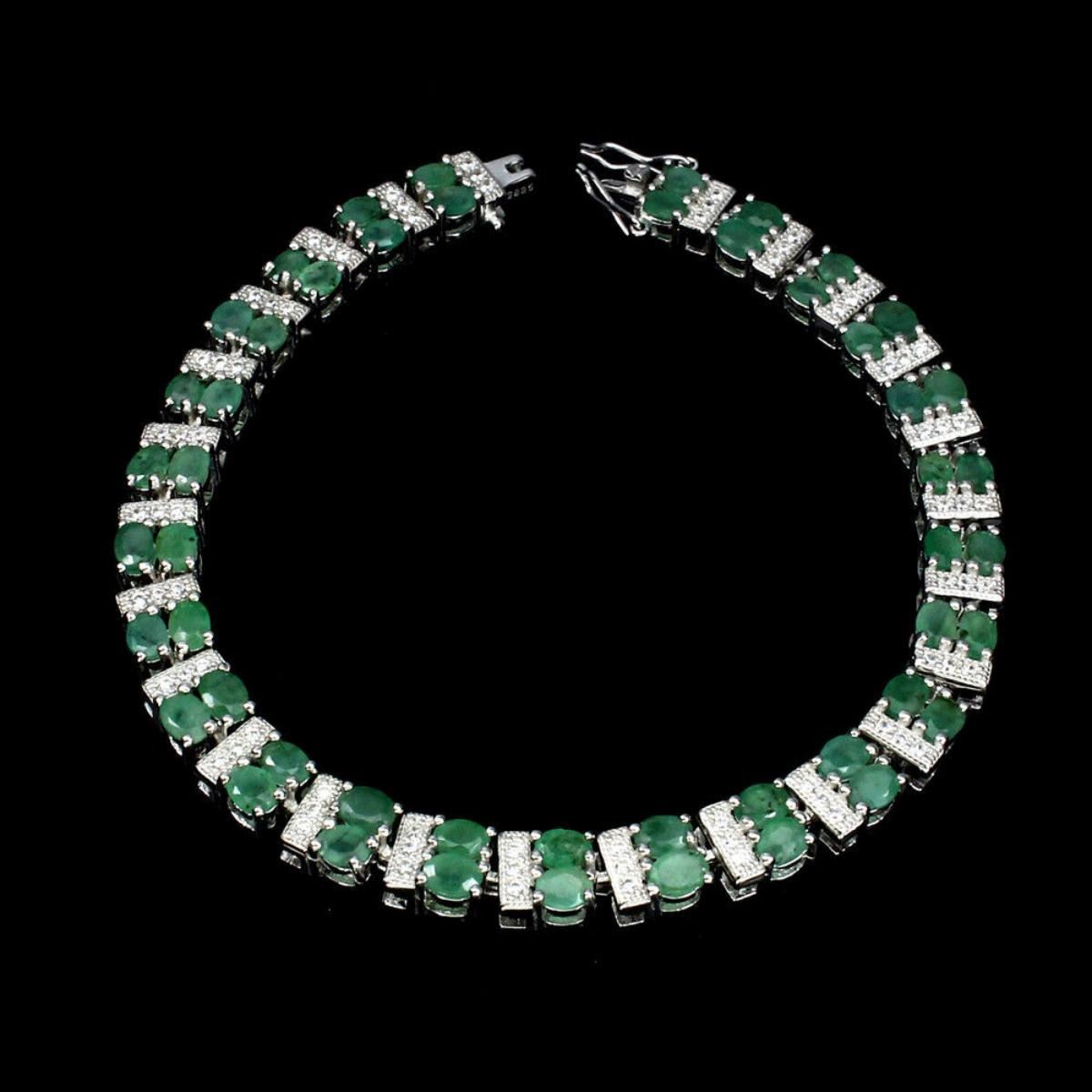 925 STERLING SILVER;PLATE.....14K WHITE GOLD;.....LENGTH (INCHES)7.5MAIN STONEEMERALDOTHER GEMSCUBIC ZIRCONIATOTAL WEIGHT85.69 CT (TOTAL WEIGHT OF SILVER + STONE)DIMENSION* STONE 4.0 X 3.0 MM. * CZ 1.0 MM. * FACE EARRINGS 190.0 X 6.0 MM.MAIN STONE SHAPEOVAL CUTMAIN STONE COLORTOP RICH GREENCLARITY/GRADETRANSPARENTLUSTERGRACEFULLYTREATMENTUNHEATEDORIGINBRAZIL