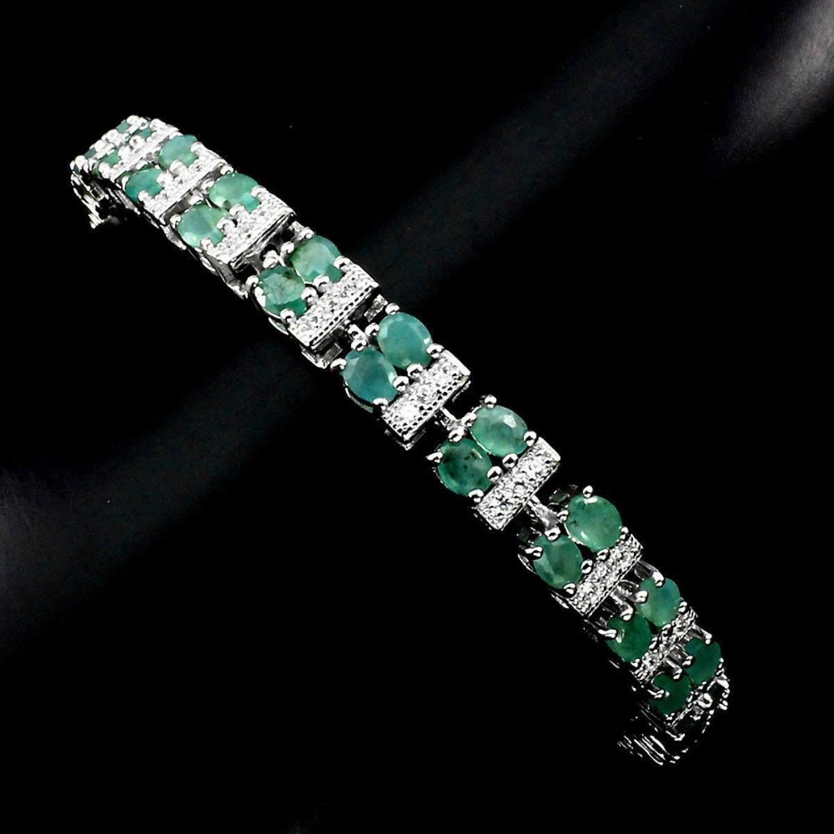 925 STERLING SILVER;PLATE.....14K WHITE GOLD;.....LENGTH (INCHES)7.5MAIN STONEEMERALDOTHER GEMSCUBIC ZIRCONIATOTAL WEIGHT85.69 CT (TOTAL WEIGHT OF SILVER + STONE)DIMENSION* STONE 4.0 X 3.0 MM. * CZ 1.0 MM. * FACE EARRINGS 190.0 X 6.0 MM.MAIN STONE SHAPEOVAL CUTMAIN STONE COLORTOP RICH GREENCLARITY/GRADETRANSPARENTLUSTERGRACEFULLYTREATMENTUNHEATEDORIGINBRAZIL
