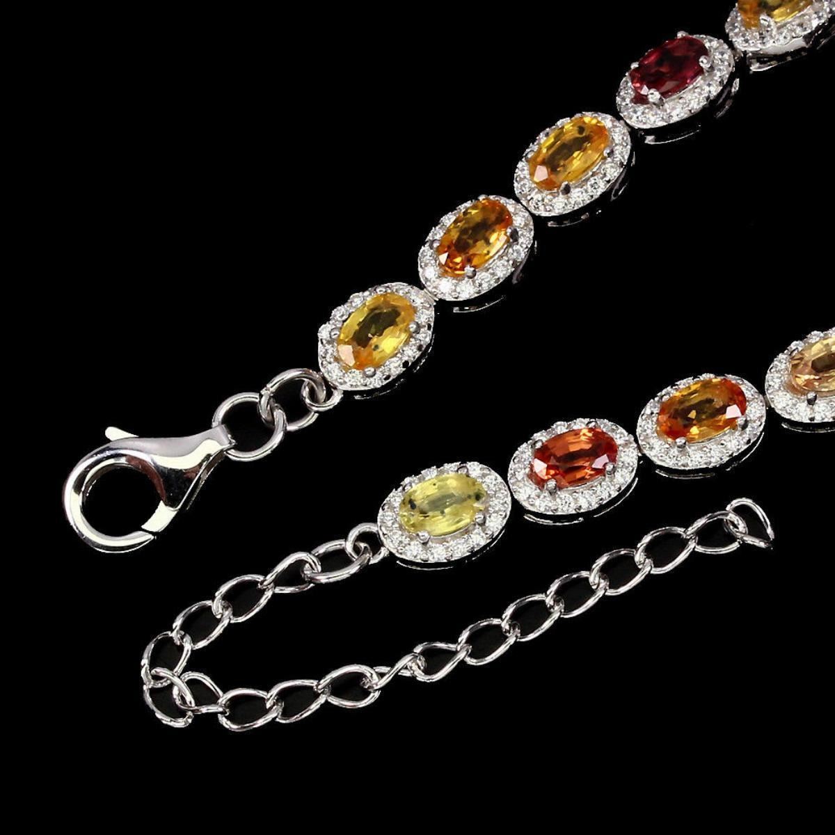 925 STERLING SILVERPLATE14K WHITE GOLDLENGTH (INCHES)10MAIN STONESAPPHIREOTHER GEMSCUBIC ZIRCONIATOTAL WEIGHT46.64 CT (TOTAL WEIGHT OF SILVER + STONE)DIMENSION* STONE 5.0 X 3.0 MM. * CZ 1.0 MM. * FACE BRACELET 170.0 X 5.0 MM.MAIN STONE SHAPEOVAL CUTMAIN STONE COLORMULTI-COLORCLARITY/GRADEIF TO VVSLUSTERSUBLIMETREATMENTHEATEDORIGINSONGEA - AFRICAHARDNESS9