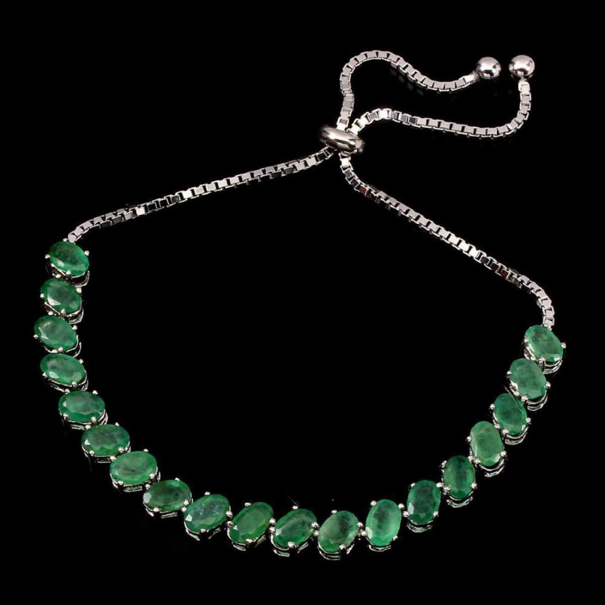 925 STERLING SILVER....PLATE....14K WHITE GOLD....LENGTH (INCHES)10;MAIN STONE....EMERALD;OTHER GEMS TOTAL WEIGHT....43.81 CT (TOTAL WEIGHT OF SILVER + STONE)DIMENSION* STONE 6.0 X 4.0 MM. * FACE BRACELET 110.0 X 6.0 MM.MAIN STONE SHAPE...OVAL CUT;MAIN STONE COLOR TOP RICH GREEN;CLARITY/GRADE TRANSPARENT;TREATMENT UNHEATED ORIGIN- Zambia; HARDNESS 7.5 - 8.0