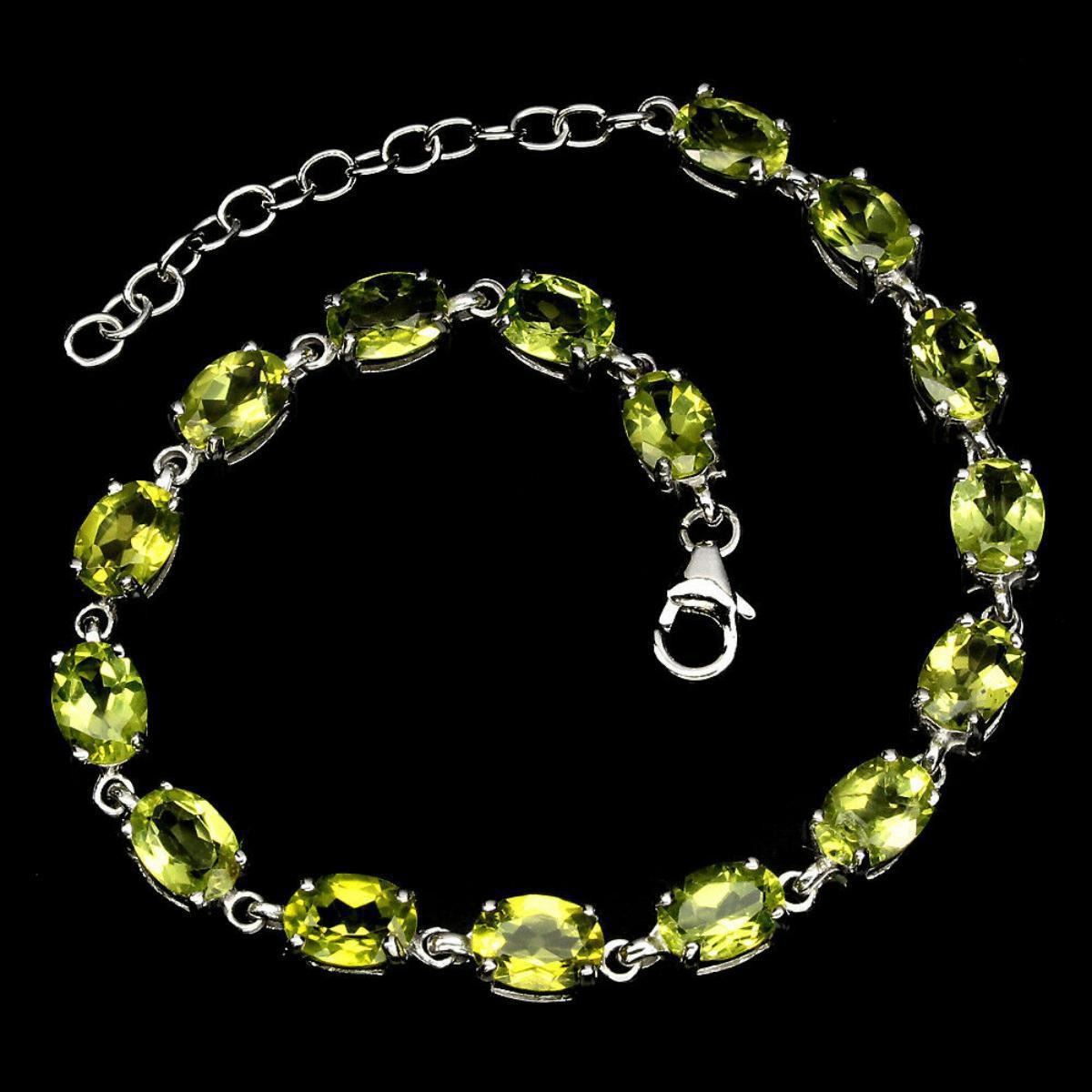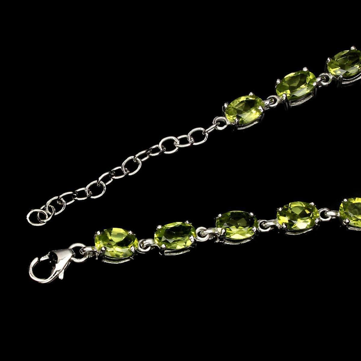 925 STERLING SILVER;PLATE14K WHITE GOLD;LENGTH (INCHES)7;MAIN STONEPERIDOT;;TOTAL WEIGHT43.58 CT (TOTAL WEIGHT OF SILVER + STONE)DIMENSION* STONE 7.0 X 5.0 MM. * FACE BRACELET 166.0 X 5.0 MM.;MAIN STONE SHAPEOVAL CUT;MAIN STONE COLORTOP RICH GREEN;CLARITY/GRADEIF TO VVS;LUSTERGORGEOUS;TREATMENTUNHEATED;ORIGINPAKISTAN;HARDNESS6.5 - 7.0;