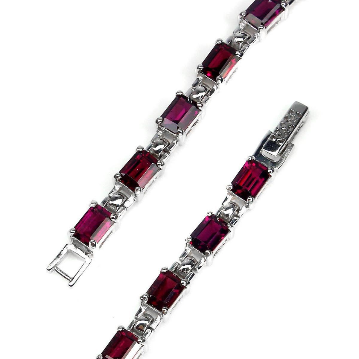 925 STERLING SILVER;PLATE14K WHITE GOLD;Length7.5 inch;MAIN STONERHODOLITE GARNETOTHER GEMSTOTAL WEIGHT95.22 CT (TOTAL WEIGHT OF SILVER + STONE)DIMENSION* STONE 7.0 X 5.0 MM. * FACE BRACELET 173.0 X 6.0 MM.MAIN STONE SHAPEOCTAGON CUTMAIN STONE COLORTOP RICH PINK RASPBERRYCLARITY/GRADEIF TO VVSLUSTERDELUXETREATMENTUNHEATEDORIGINAFRICAHARDNESS7.0 - 7.5