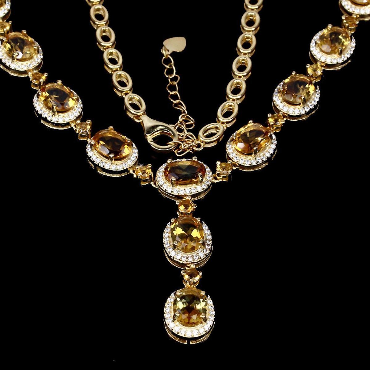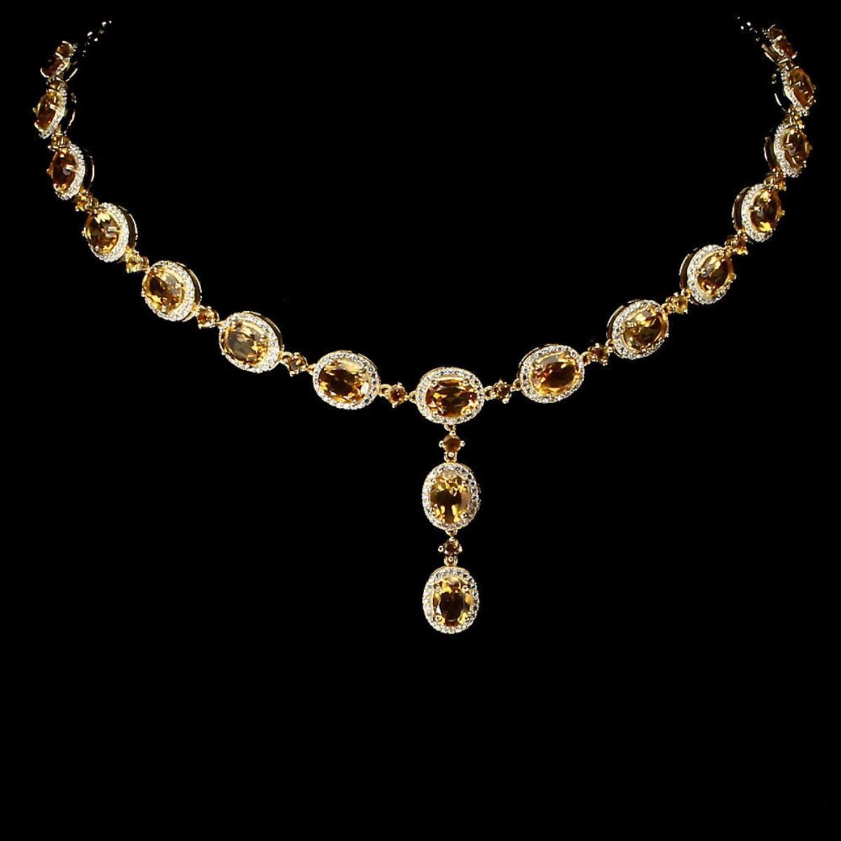 925 STERLING SILVER;PLATE....14K YELLOW GOLD;LENGTH (INCHES)20MAIN STONECITRINEOTHER GEMSCUBIC ZIRCONIATOTAL WEIGHT164.93 CT (TOTAL WEIGHT OF SILVER + STONE)DIMENSION* STONE 3.0 TO 8.0 X 6.0 MM. * CZ 1.0 MM. * STONES PART LENGTH 247.0 X 43.0 MM.MAIN STONE SHAPEOVAL CUTMAIN STONE COLORTOP RICH YELLOWCLARITY/GRADEIF TO VVSLUSTERMAGNIFICENTTREATMENTUNHEATEDORIGINBRAZILHARDNESS7.0