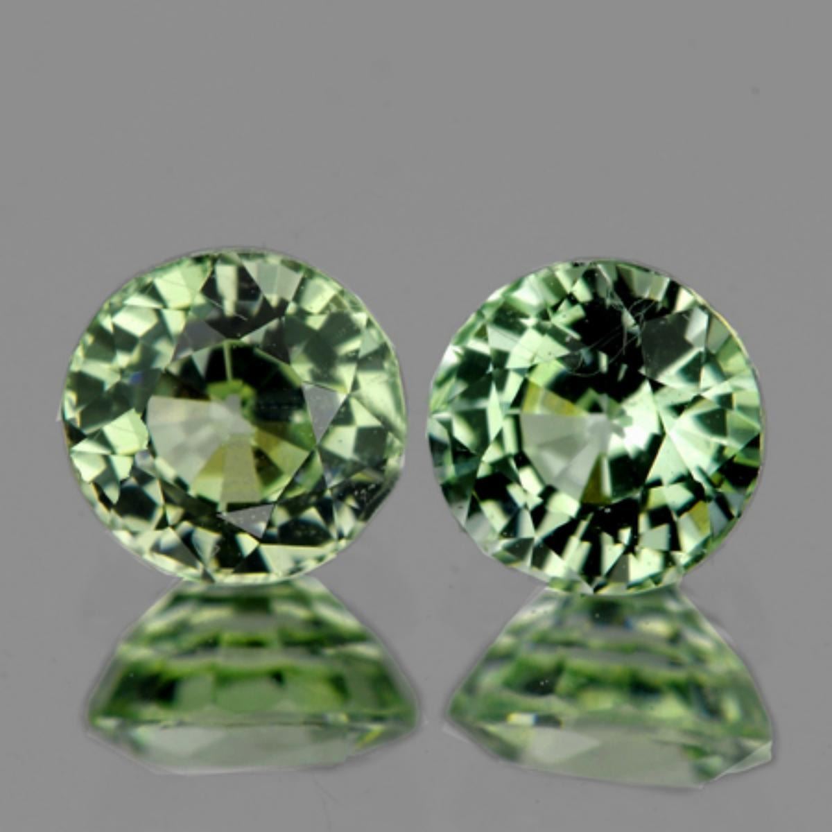 Natural Green Sapphire; SHAPE : Round SIZE ( L x W x D ) : 4.50 mm QUANTITY : 2 pieces ( Perfectly Matched Pair) COLOR : Bright Green CLARITY : Flawless-VVS1 ORIGIN : Ceylon HARDNESS : 9 LUSTER : Excellent!!!