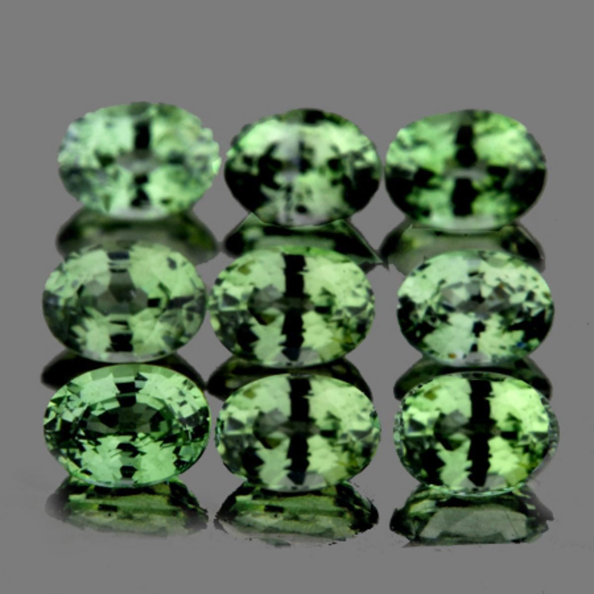 Natural Green Sapphire; WEIGHT : 3.04 cts; SHAPE : Oval; SIZE ( L x W x D ) : 4.50 x 3.50 mm; QUANTITY : 9 pieces ; COLOR : AAA ceylon Green; CLARITY : Flawless-VVS1; ORIGIN : Ceylon; HARDNESS : 9; LUSTER : Excellent!!! TREATMENT : Heated