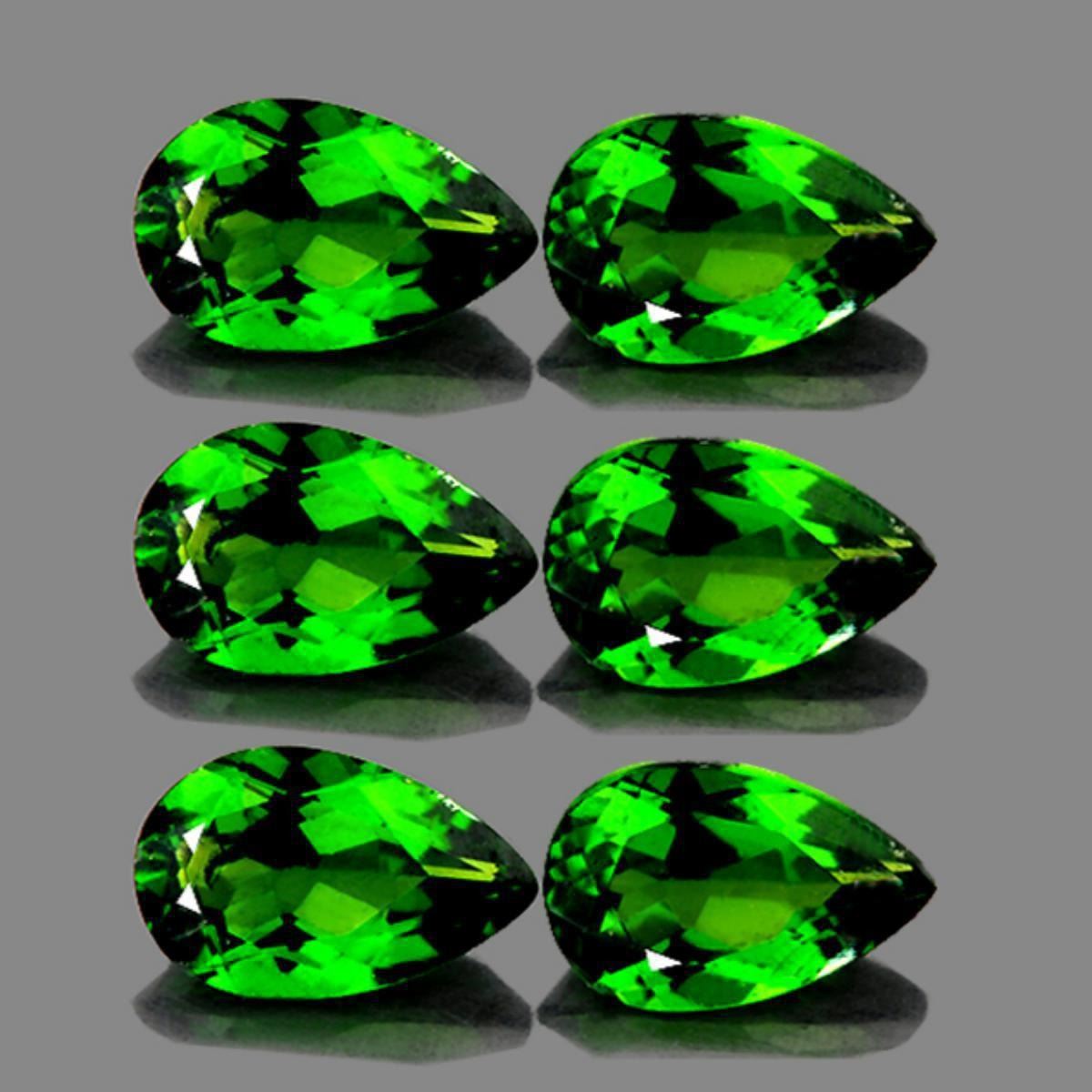 Natural Diopside; SHAPE : Pear; SIZE ( L x W x D ) : 5.00 x 3.00 mm; QUANTITY : 6 pieces ( Perfectly Matched Set ) COLOR : Chrome Green AAA COLOR; CLARITY : Flawless-VVS1 AAA Grade; ORIGIN : Russia; HARDNESS : 6; LUSTER : Excellent!!! TREATMENT : 100% Natural Unheated;