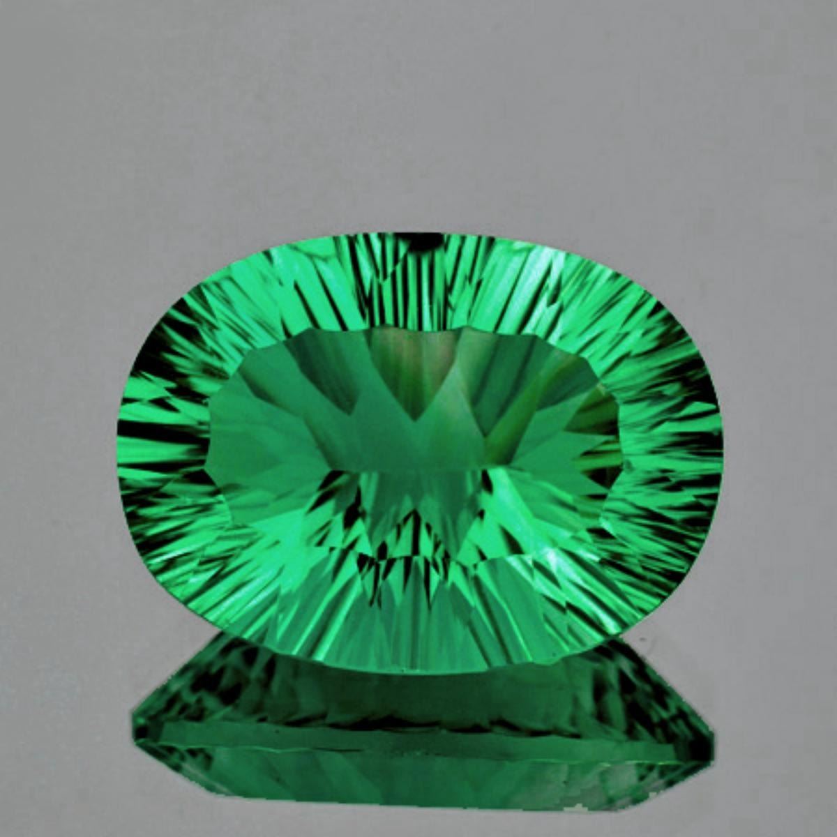 Natural Fluorite WEIGHT : 18.02cts SHAPE : Oval (Concave Cut) SIZE ( L x W x D ) : 19.43 x 13.70 x 10.61 mm QUANTITY : 1 piece COLOR : Emerald Green AAA Color CLARITY : Flawless-VVS ORIGIN : USA HARDNESS : 4-5 LUSTER : Excellent!!! TREATMENT : 100% Natural Unheated;Fluorite is made up of calcium fluoride and has a transparent or translucent appearance. Sometimes it can be a colorless crystal, but other times it can also be purple, blue, green, yellow, or pink, or other combinations of these colors. Fluorite is sometimes called fluorspar. The name is derived from the Latin word ‘fluo’, meaning to flow. It’s one of the most sought after and most collectible crystals in the world because of its luminosity and beauty. It has a soft and glassy appearance that is often very vibrant.........On a psychic level, Fluorite is a very protective crystal. It will help you know when there are external forces trying to control or manipulate you, and it can effectively shut down any kind of mental or psychic manipulation. This is a particularly useful crystal to have at work when you are surrounded by hostile or opposing forces. It’s also a powerful crystal to ward off negative energies that threaten your personal relationships. Fluorite can get rid of any electromagnetic fog that can attract or retain negative energies and make you feel psychically, emotionally, or mentally lethargic. It can purify your body and eliminate anything that’s causing it not to function perfectly. It can bring you calmness and relaxation, and it can relieve all your tensions and anxieties.....Fluorite can help you have more structure in your everyday life, making you physically, emotionally, and mentally prepared to overcome both small and big challenges. This crystal can help you declutter and get rid of the things, or even people, that are no longer healthy for you. It can support you in breaking away from rigid patterns of behavior or old ways of thinking. It has the ability to increase your intuition. It can increase your sense of confidence and strengthen your know-hows when it comes to life. If you’re feeling lost, confused, or empty, the uplifting energies of this crystal will reassure you that everything’s going to be alright........................................This article is from......https://meanings.crystalsandjewelry.com/fluorite/