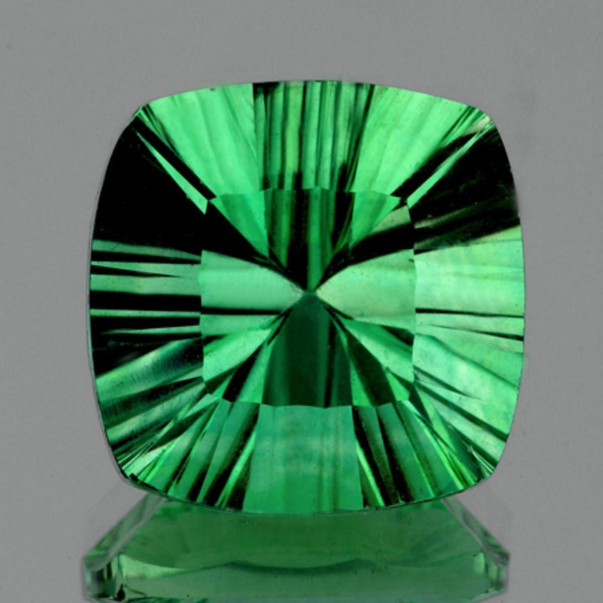 Natural Fluorite WEIGHT : 28.18 cts SHAPE : Cushion (Concave Cut) SIZE ( L x W x D ) : 18.80 x 18.55 x 12.95 mm QUANTITY : 1 piece COLOR : Emerald Green Best AAA Color CLARITY : Flawless-VVS1 AAA Grade ORIGIN : Brazil; HARDNESS : 4-5 LUSTER : Excellent!!! TREATMENT : 100% Natural Unheated; Fluorite is made up of calcium fluoride and has a transparent or translucent appearance. Sometimes it can be a colorless crystal, but other times it can also be purple, blue, green, yellow, or pink, or other combinations of these colors. Fluorite is sometimes called fluorspar. The name is derived from the Latin word ‘fluo’, meaning to flow. It’s one of the most sought after and most collectible crystals in the world because of its luminosity and beauty. It has a soft and glassy appearance that is often very vibrant.........On a psychic level, Fluorite is a very protective crystal. It will help you know when there are external forces trying to control or manipulate you, and it can effectively shut down any kind of mental or psychic manipulation. This is a particularly useful crystal to have at work when you are surrounded by hostile or opposing forces. It’s also a powerful crystal to ward off negative energies that threaten your personal relationships. Fluorite can get rid of any electromagnetic fog that can attract or retain negative energies and make you feel psychically, emotionally, or mentally lethargic. It can purify your body and eliminate anything that’s causing it not to function perfectly. It can bring you calmness and relaxation, and it can relieve all your tensions and anxieties.....Fluorite can help you have more structure in your everyday life, making you physically, emotionally, and mentally prepared to overcome both small and big challenges. This crystal can help you declutter and get rid of the things, or even people, that are no longer healthy for you. It can support you in breaking away from rigid patterns of behavior or old ways of thinking. It has the ability to increase your intuition. It can increase your sense of confidence and strengthen your know-hows when it comes to life. If you’re feeling lost, confused, or empty, the uplifting energies of this crystal will reassure you that everything’s going to be alright.