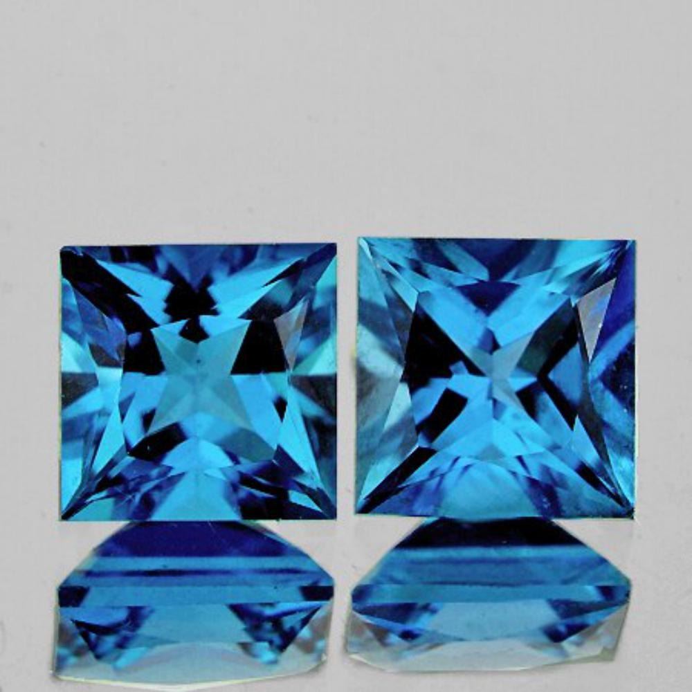 Natural London Blue Topaz ; SHAPE : Square (Princess Cut) SIZE ( L x W x D ) : 7.00 mm; QUANTITY : 2 pieces (Perfctly Matched Pair) COLOR : London Blue ; CLARITY : Flawless-VVS1; ORIGIN : Brazil; HARDNESS : 8; LUSTER : Best AAA Fire!!! TREATMENT : Heated;