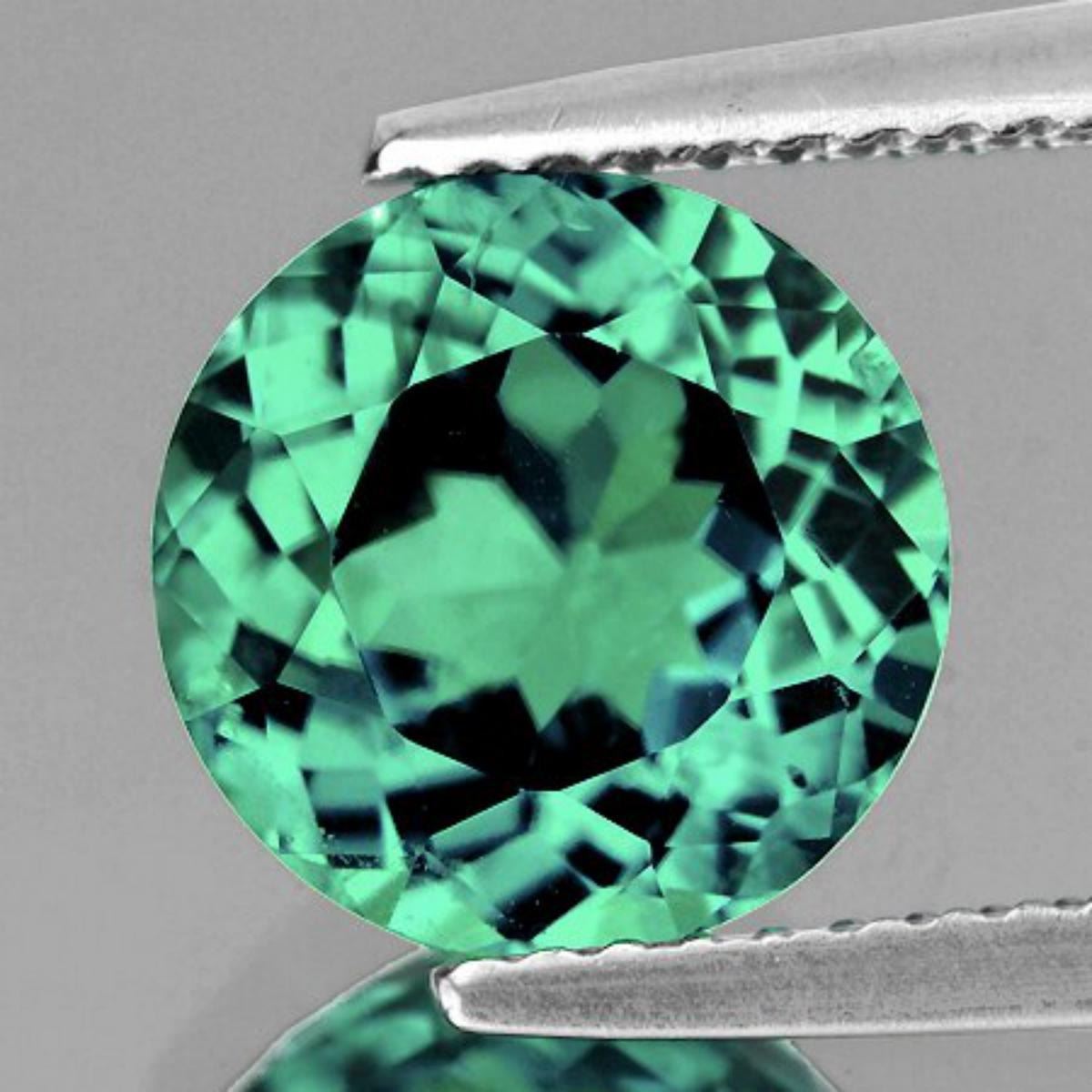 Natural Apatite; WEIGHT : 1.17 cts; SHAPE : Round ; SIZE ( L x W x D ) : 6.87 x 4.04 mm; QUANTITY : 1 piece; COLOR : Paraiba Green ; CLARITY : VVS AAA Grade; ORIGIN : Madagascar; HARDNESS : 5; LUSTER : Brilliant Luster!!! TREATMENT : 100% Natural Unheated;