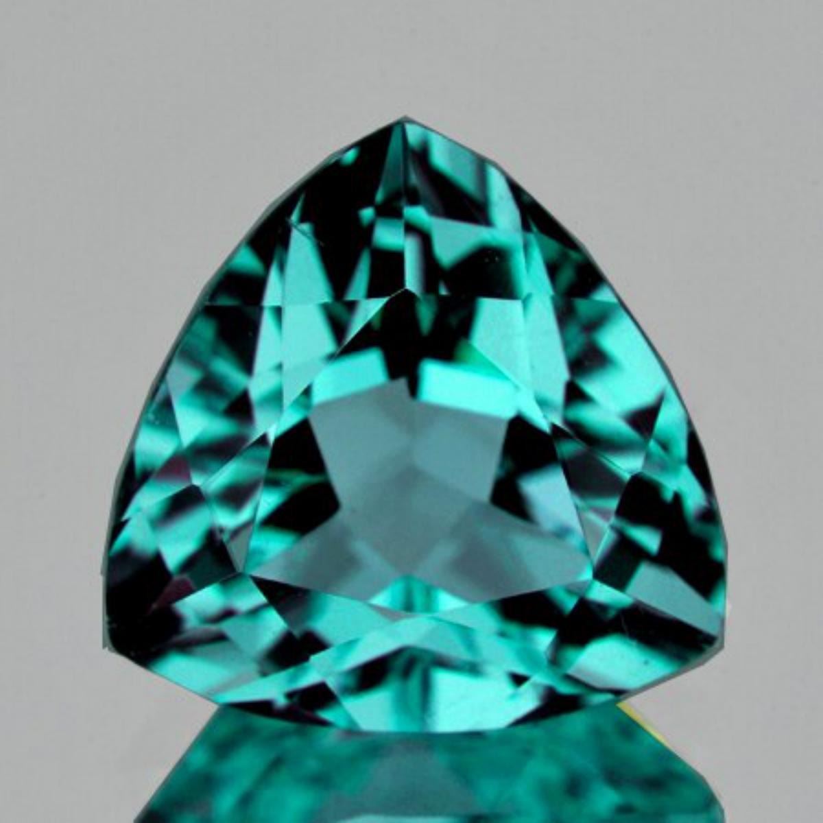 Natural Apatite; WEIGHT : 1.08 cts; SHAPE : Trilliant; SIZE ( L x W x D ) : 7.24 x 3.40 mm; QUANTITY : 1 piece; COLOR : Paraiba Green Blue; CLARITY : Flawless-VVS; ORIGIN : Madagascar; HARDNESS : 5; LUSTER : Brilliant Luster!!! TREATMENT : 100% Natural Unheated;