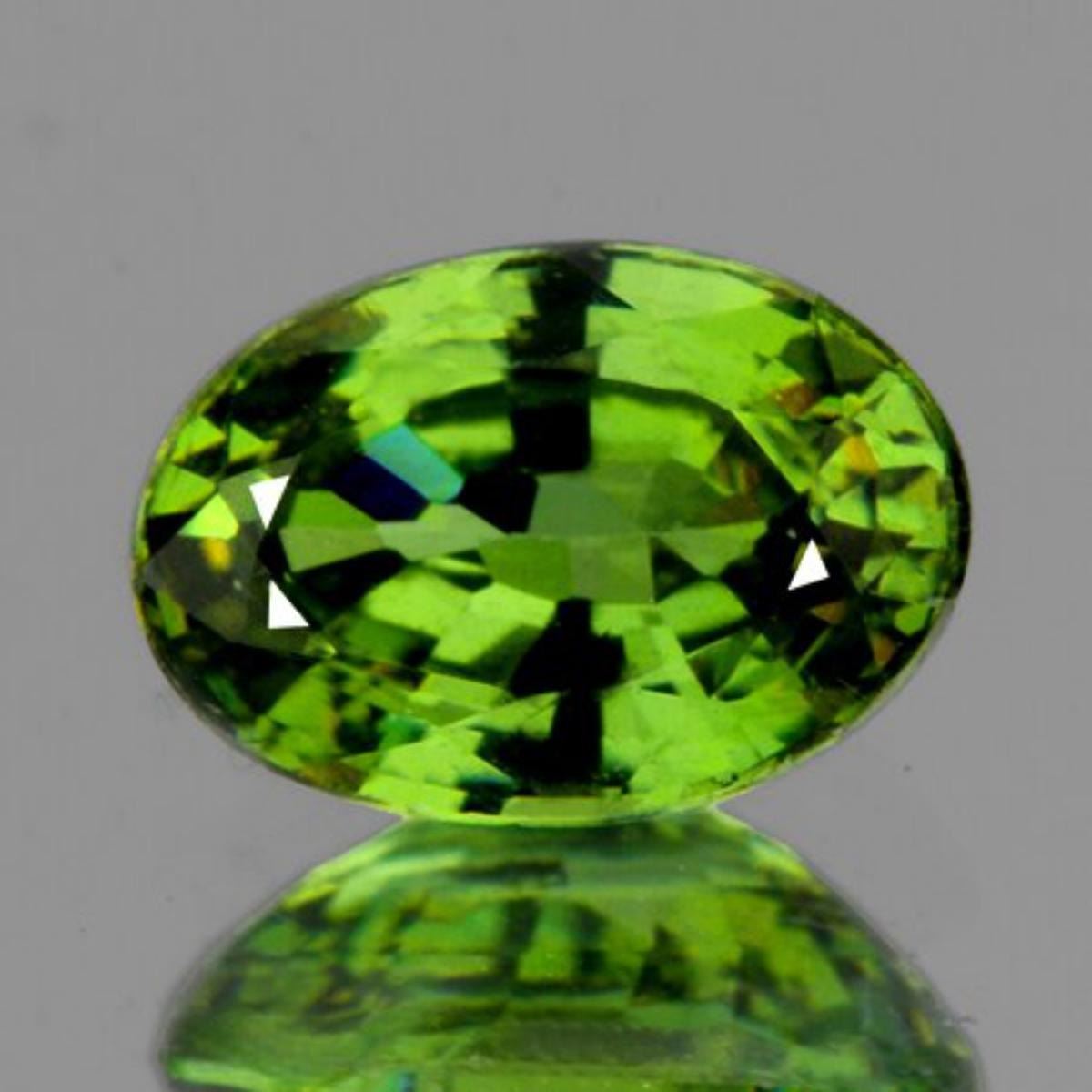 Natural Demantoid; SHAPE : Oval; SIZE ( L x W x D ) : 6.32 x 4.39 x 2.89 mm; QUANTITY : 1 pieces; COLOR : Premium Green ; CLARITY : Flawless-VVS1 AAA Grade ; ORIGIN : Ural Mountains , Russia; HARDNESS : 7; LUSTER : AAA Fire!!! TREATMENT : 100% Natural Unheated;