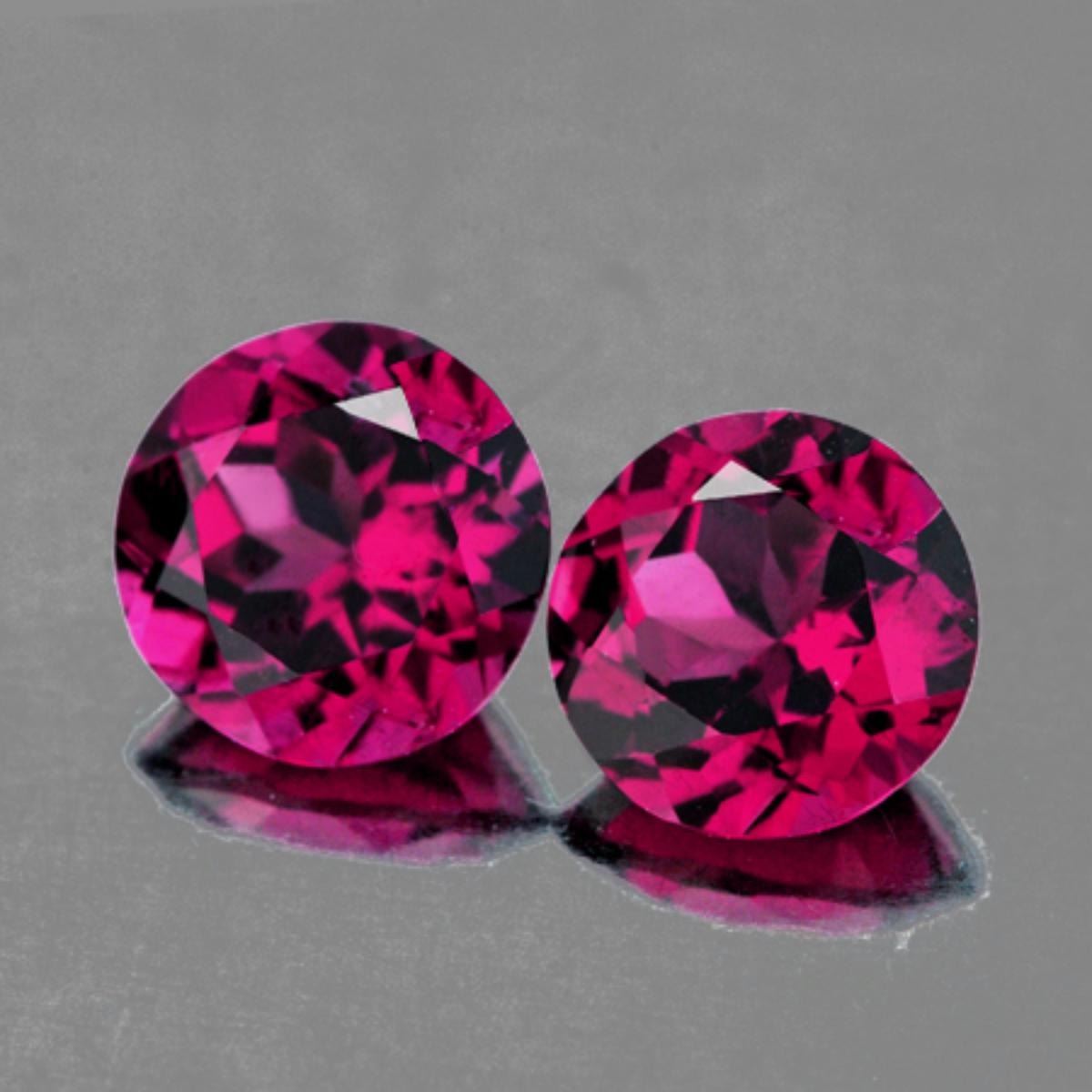 Natural Rhodolite Garnet WEIGHT : 2.47 cts SHAPE : Round SIZE ( L x W x D ) : 6.30 mm QUANTITY : 2 pieces ( Perfectly Matched Pair ) COLOR : Raspberry Pink CLARITY : Flawless-VVS ORIGIN : Umba Valley, Tanzania HARDNESS : 7 LUSTER : AAA Fire!!! TREATMENT : 100% Natural Unheated