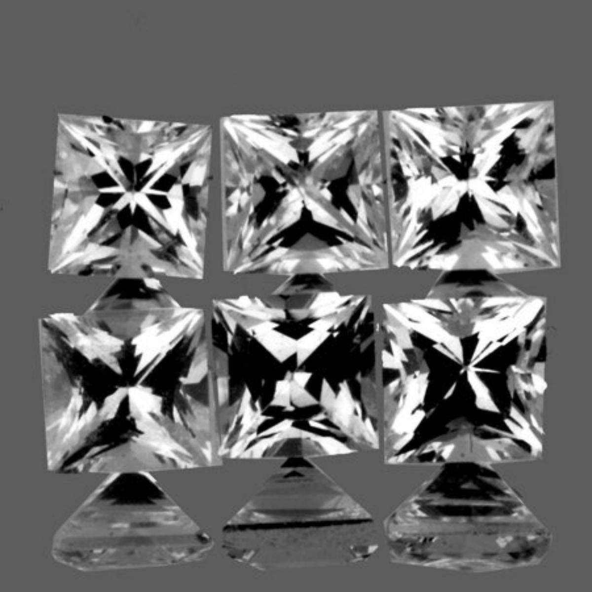 Natural White Sapphire; SHAPE : Square (Princess Cut) SIZE ( L x W x D ) : 2.80 mm; QUANTITY : 6 pieces ( Perfectly Matched Set) COLOR : White; CLARITY : Flawless-VVS1 AAA Grade; ORIGIN : Ceylon; HARDNESS : 9; LUSTER : Excellent!!! Best Fire; TREATMENT : UnHeated 100% Natural;