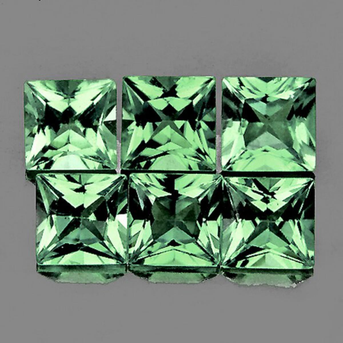 Natural Sapphire (Earthly Mined)SIZE ( L x W x D ) : 3.00 mm;COLOR : Green;SHAPE : Square (Machine Princess Cut)QUANTITY : 6 pieces;LUSTER : Excellent;CLARITY : Flawless-VVS;HARDNESS : 9;ORIGIN : Ceylon;