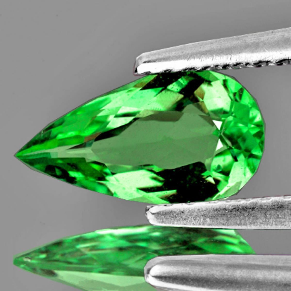 Natural Green Garnet (Tsavorite) WEIGHT : 0.57 cts; SHAPE : Pear ; SIZE ( L x W x D ) : 7.88 x 4.14 x 2.30 mm QUANTITY : 1 pieces ; COLOR : AAA Green ; CLARITY : Flawless-VVS1; ORIGIN : Tanzania; HARDNESS : 7; TREATMENT : 100% Natural Unheated;