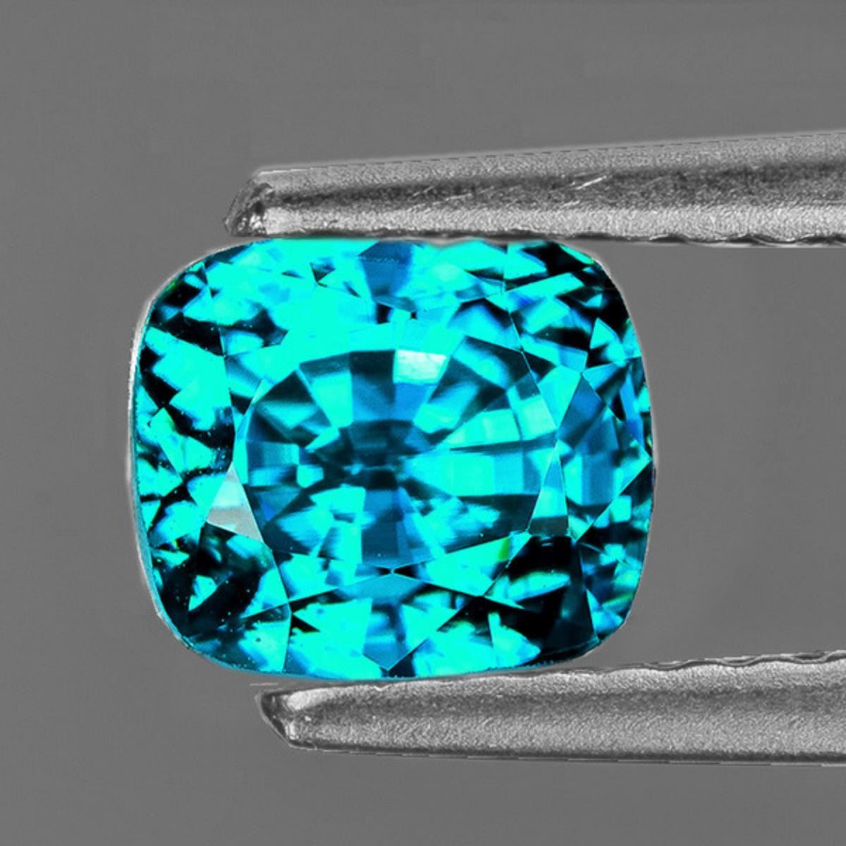 WEIGHT : 4.08 cts;STONE NAME : Natural Zircon (Earthly Mined);SIZE ( L x W x D ) : 8.61 x 7.30 x 6.07 mm;COLOR : Blue;SHAPE : Cushion;QUANTITY : 1 piece;LUSTER : Extreme Brilliancy;CLARITY : Flawless-VVS;HARDNESS : 7.5;ORIGIN : Cambodia; TREATMENT : Heated
