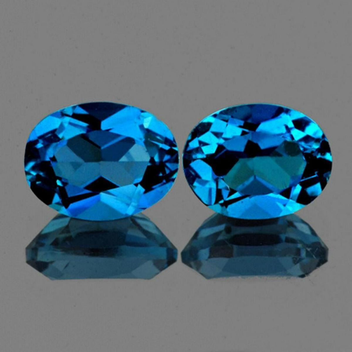 Natural London Blue Topaz; SHAPE : Oval; SIZE ( L x W x D ) : 7.00 x 5.00 mm; QUANTITY : 2 pieces ( Perfectly Matched Set) COLOR : London Blue AAA Color; CLARITY : Flawless-VVS1 AAA Grade; ORIGIN : Brazil; HARDNESS : 8; LUSTER : Excellent!!! TREATMENT : Standard;